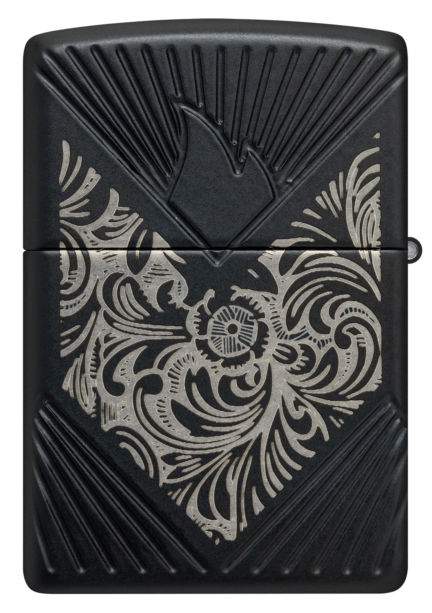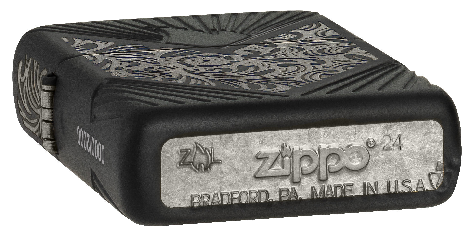 Geïntroduceerd als de Florentine in 1974, wervelt het iconische Venetian®-patroon aan alle kanten van de Armor®- aanstekerhouder met ons Laser Engrave-proces. Het sierlijke ontwerp contrasteert prachtig met de Black Matte-afwerking, die zijn debuut maakte in 1984, terwijl het Zippo-pictogram tussen diagonale MultiCut-krijtstrepen is genesteld, een ode aan het allereerste Deep Carve-ontwerp dat in 2004 werd onthuld. Tot slot wordt het Venetiaanse patroon gerepliceerd met een delicate lasergravure op het chromen inzetstuk, dat speciaal werd gekozen voor Europa, het Midden-Oosten en Afrika.