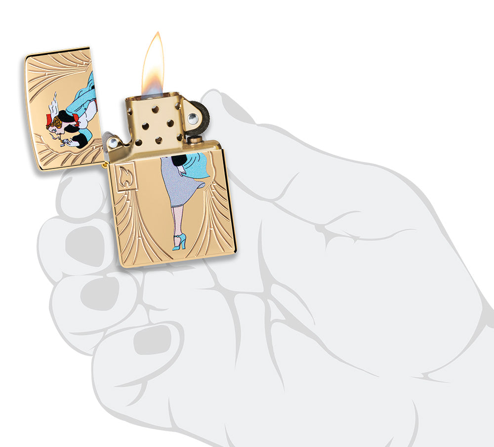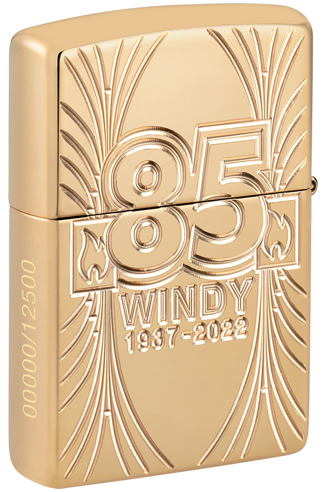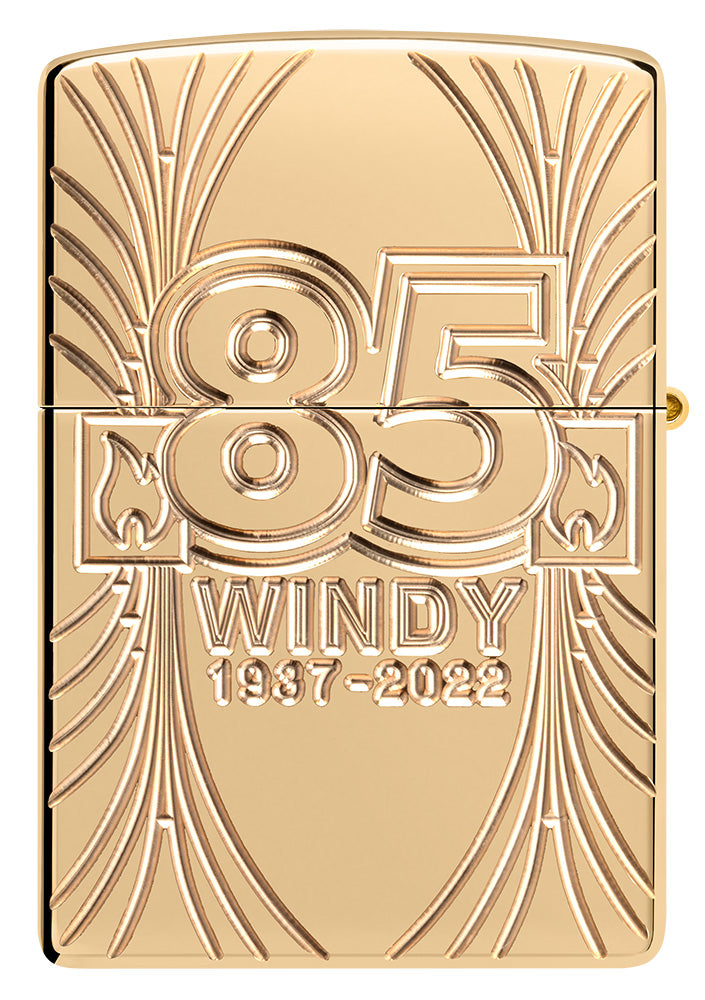Op deze aansteker in Armor® High Polish Brass verschijnt Windy als een prachtige kleurenafbeelding en bewijst de faam van windproof Zippo aanstekers. Zowel de voor- als de achterkant van de aansteker, waarop het symbool van de 85e verjaardag staat, zijn versierd met ingewikkeld Deep Carve. Elk stuk wordt geleverd met een vergulde insert en opeenvolgende nummering.