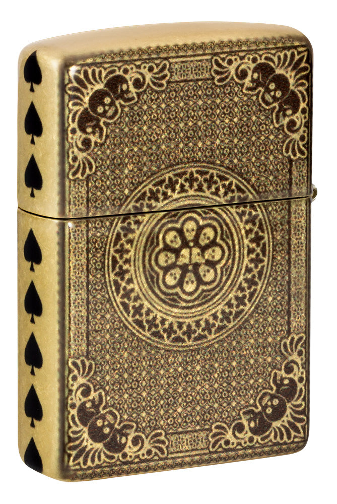 Onthuld op onze 2024 Founder's Day Collectible, voegt de combinatie van onze processen Lustre en 540 Fusion een luxe dimensie en glinsterende kleur toe aan verbluffende, rondom doorlopende designs. Dit model van Tumbled Brass heeft een fijnmazig schoppenaasdesign bezaaid met subtiele doodshoofden. Het Schoppen-symbool is geëtst onder de smetteloze afwerking en voegt betoverende diepte toe aan het oppervlak aan de voorkant.