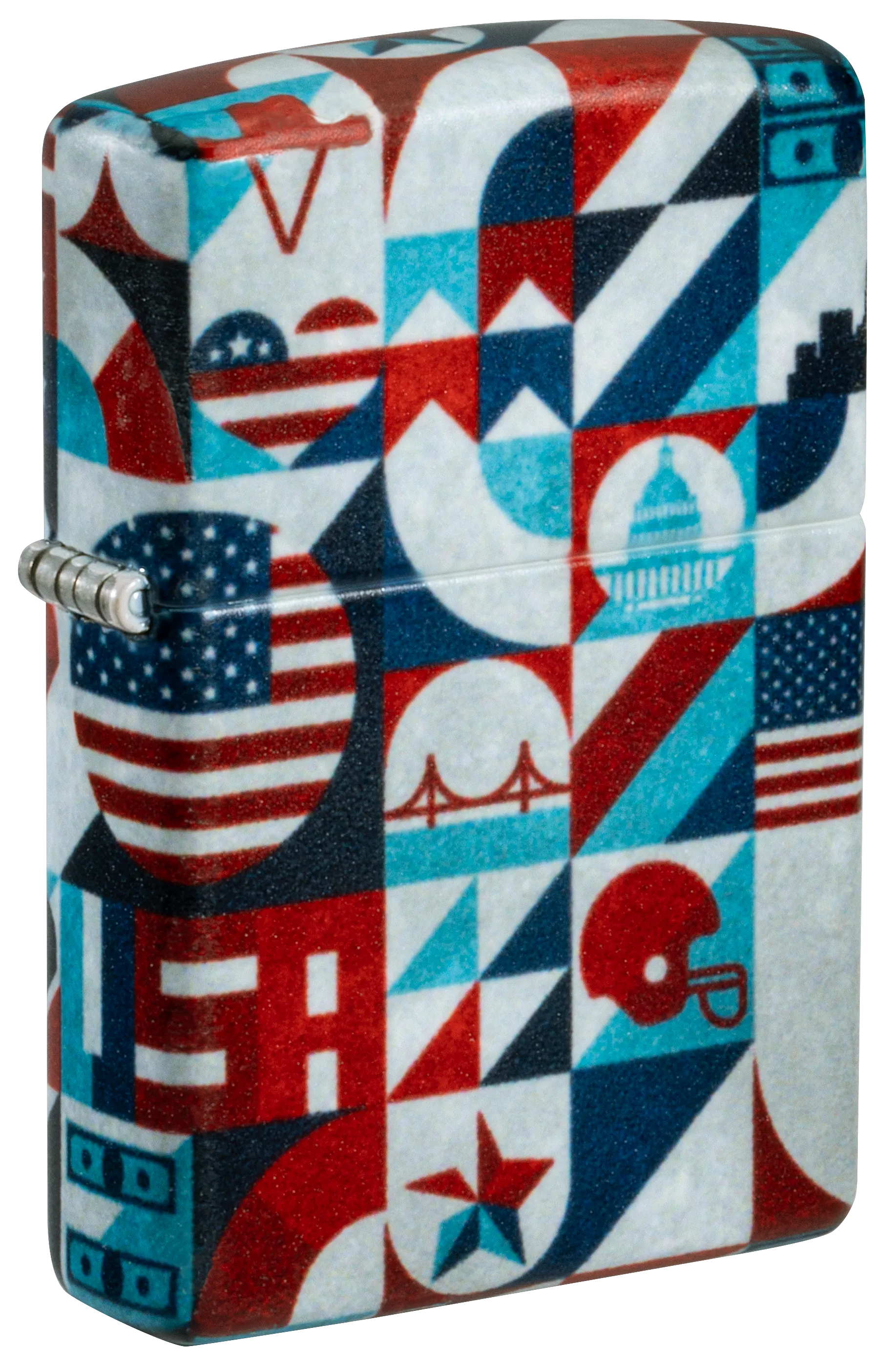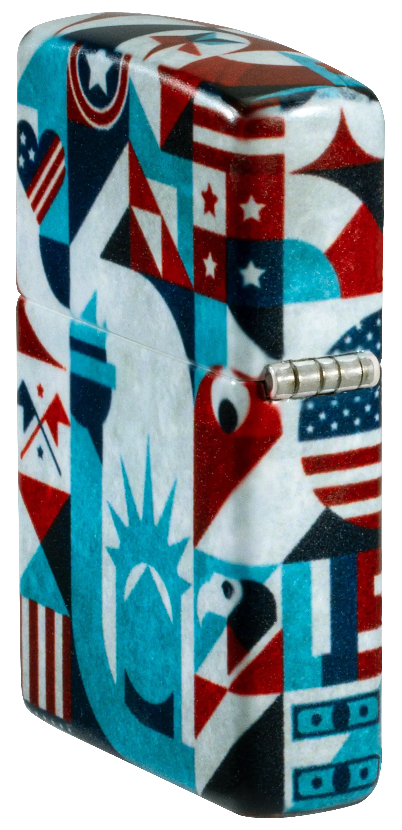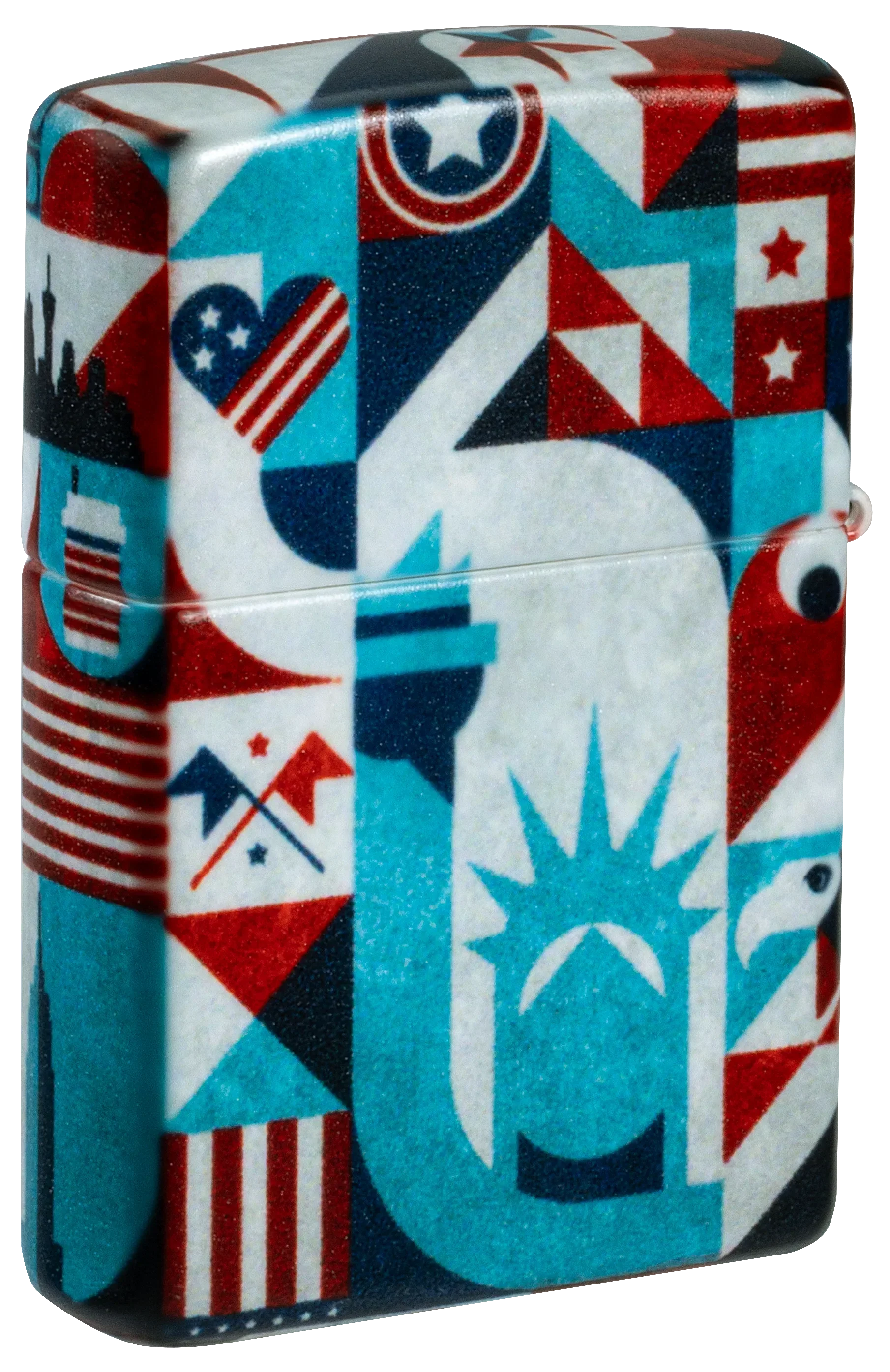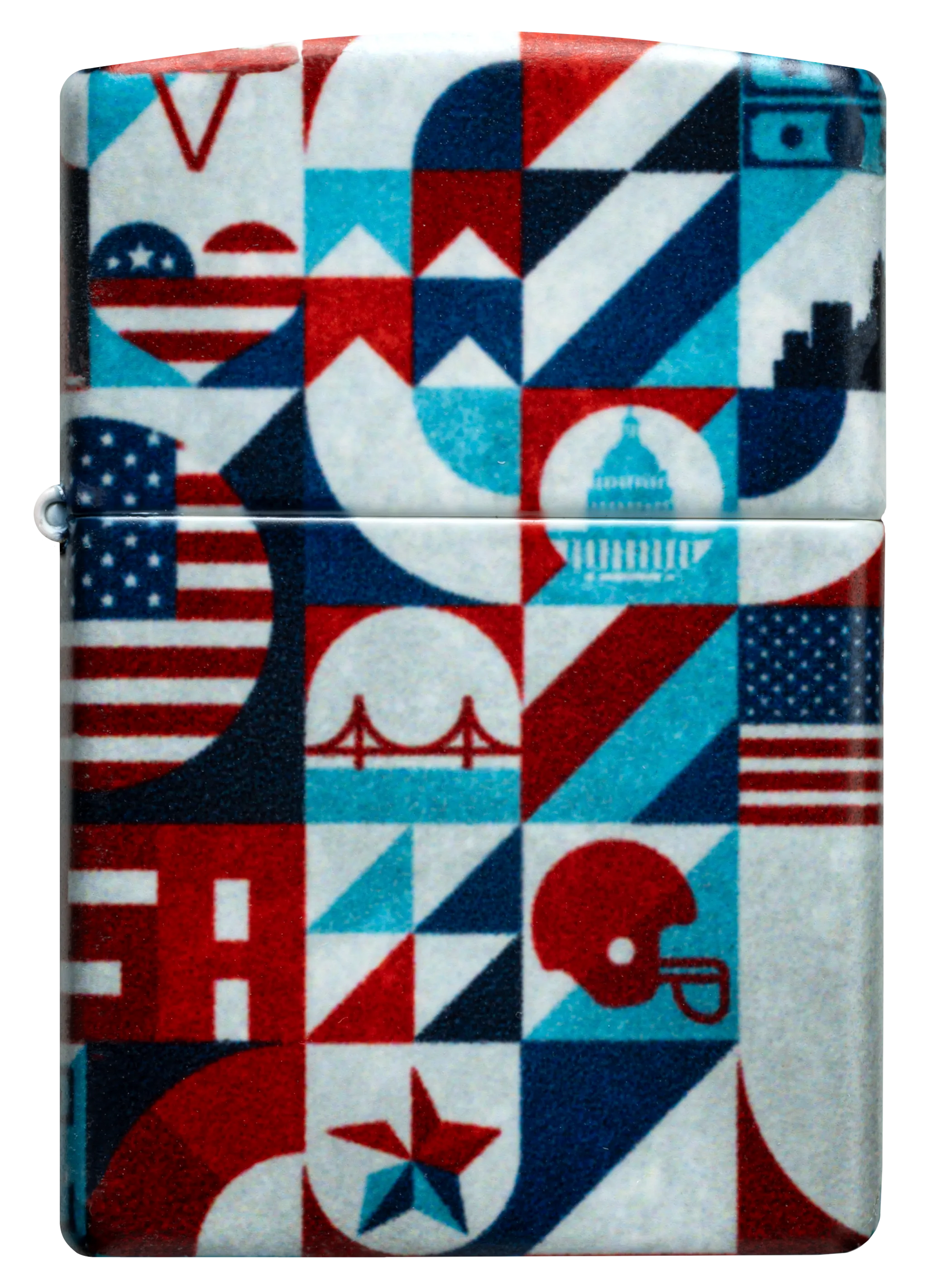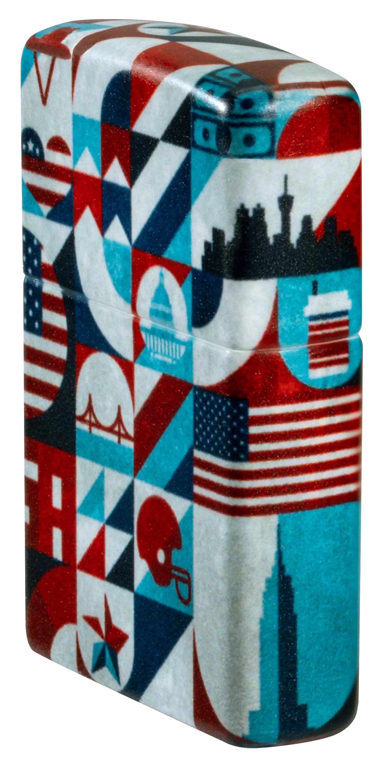 Historische monumenten en symbolen van de VS versieren alle kanten van deze klassieke 540 Color aansteker in een levendig en vaderlandslievend ontwerp.