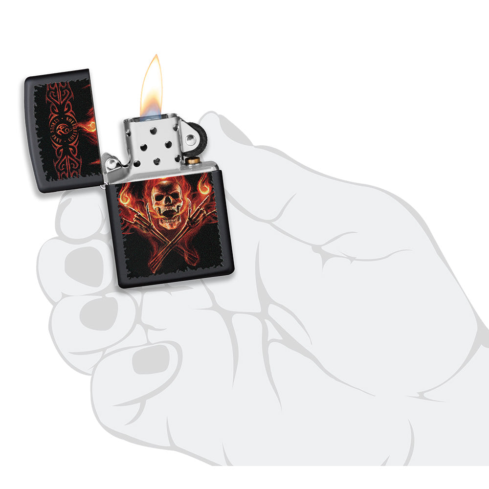 - De hervulbare aansteker gaat een leven lang mee. Werkt het best met de echte Zippo-premium aanstekerbenzine, vuursteentje en lont.