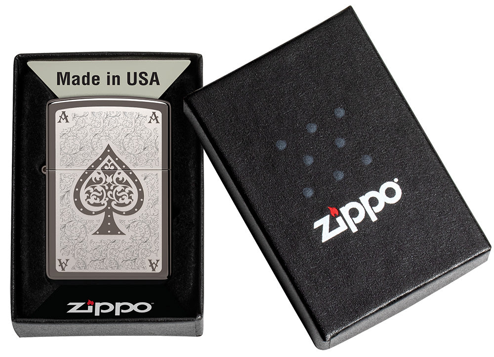 De Ace Filigree maakt indruk met zijn kunstzinnig vervaardigde ontwerp. Met een elegant oppervlak en precieze lasergravure is het een waar meesterwerk. Het hoogtepunt van deze Zippo aansteker is het filigraan motief van een aas dat op de voorkant van de aansteker is gegraveerd. De aas symboliseert geluk, kracht en succes en geeft de aansteker een vleugje verfijning en individualiteit.