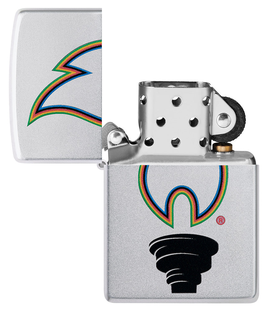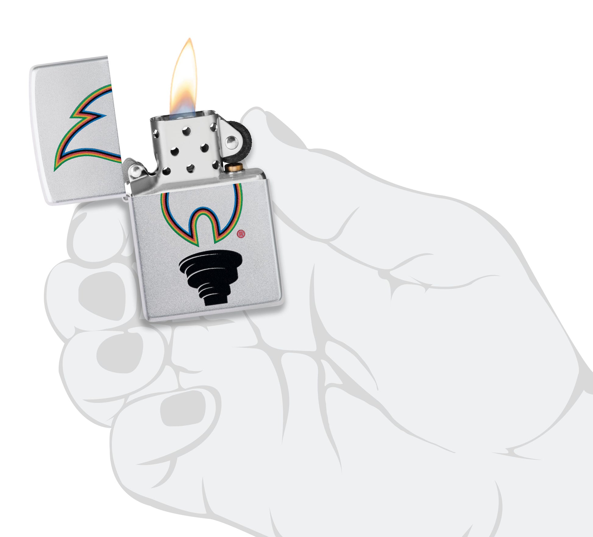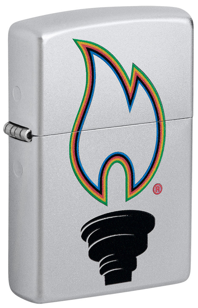 Draag de fakkel van de overwinning met deze Satin Chrome aansteker. Een veelkleurig Zippo-vlam brandt fel bovenop een krachtige fakkel in dit levendige Color Image design.
