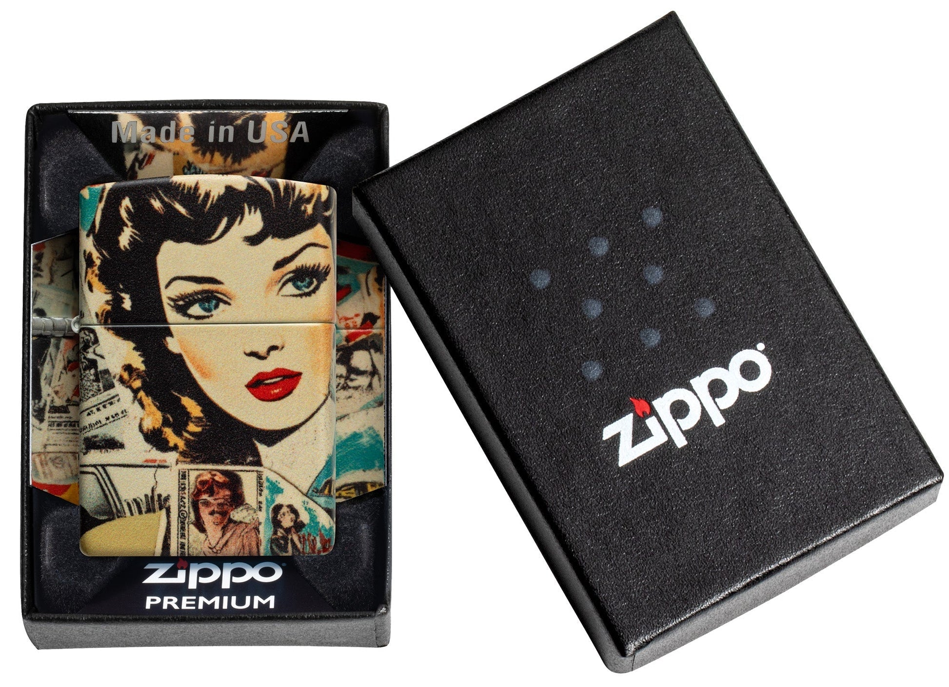 Sprekende knipsels uit een vintage stripboek sieren deze klassieke 540 Color-aansteker in een naadloos en betoverend Multicolor-design dat zich over het hele oppervlak uitstrekt.