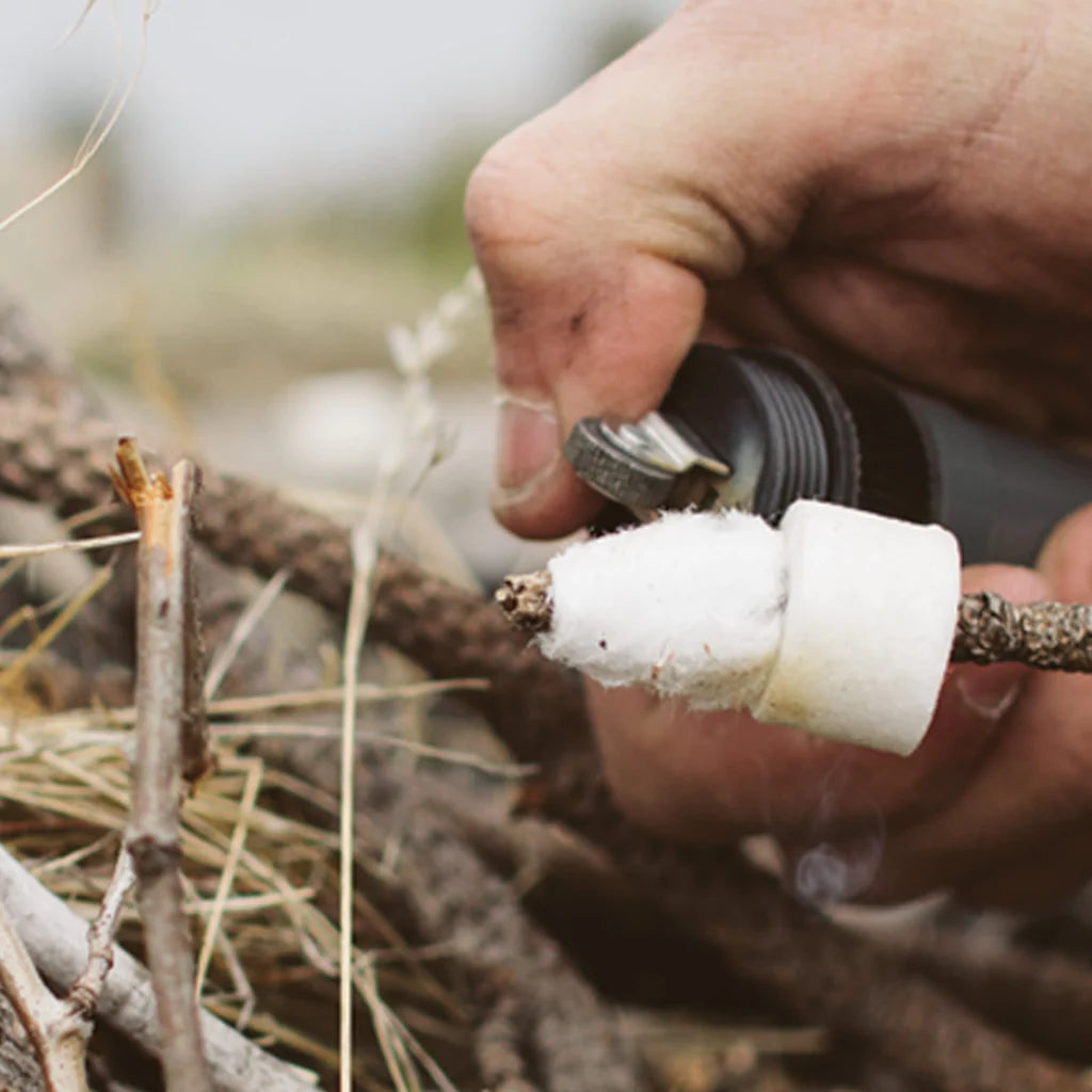 Onze Emergency Fire Kit is altijd de redder in nood en gaat door wanneer anderen het opgeven. De constructie is waterdicht, compact en van hoog kaliber, heeft voldoende vermogen voor zelfs de moeilijkste omstandigheden en start je kampvuur in een handomdraai.