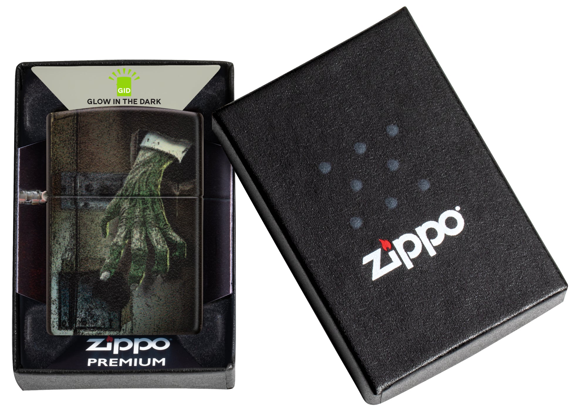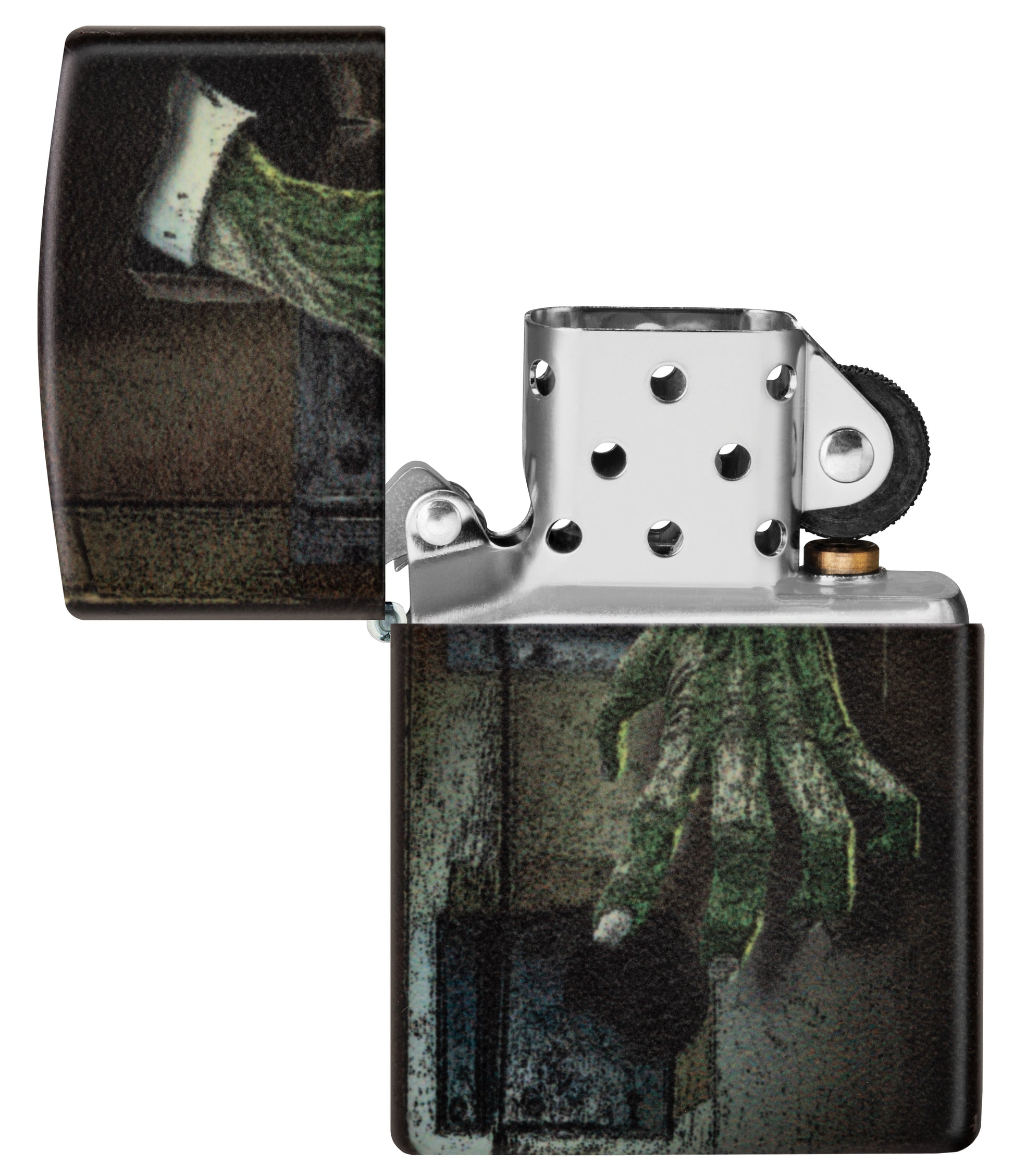 Een gruwelijke groene hand breekt door de sloten van deze angstaanjagende Glow in the Dark aansteker. Het tweezijdige ontwerp licht op na slechts een paar minuten te zijn blootgesteld aan fel licht.