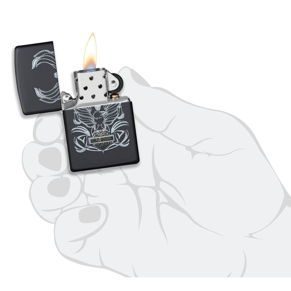 - De hervulbare aansteker gaat een leven lang mee. Werkt het best met de echte Zippo-premium aanstekerbenzine, vuursteentje en lont.