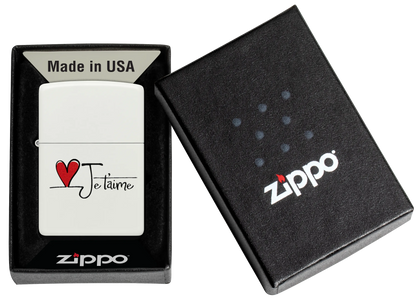 Voeg extra romantiek toe aan je verzameling met deze klassieke White Matte aansteker. ‘J'taime’, Frans voor ‘ik hou van je’, staat afgebeeld naast een opgewekt rood hart in een lieflijk Color Image design.