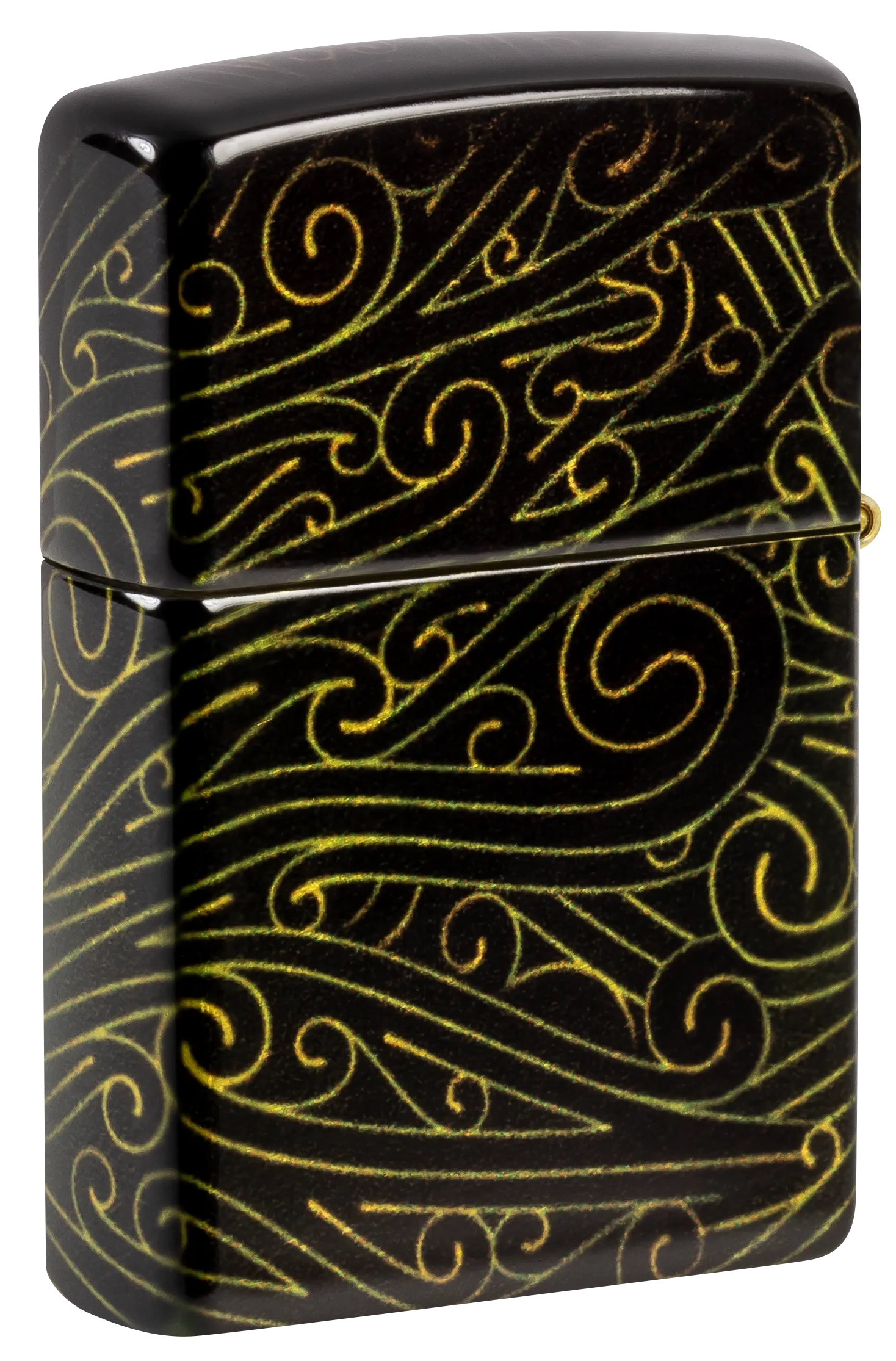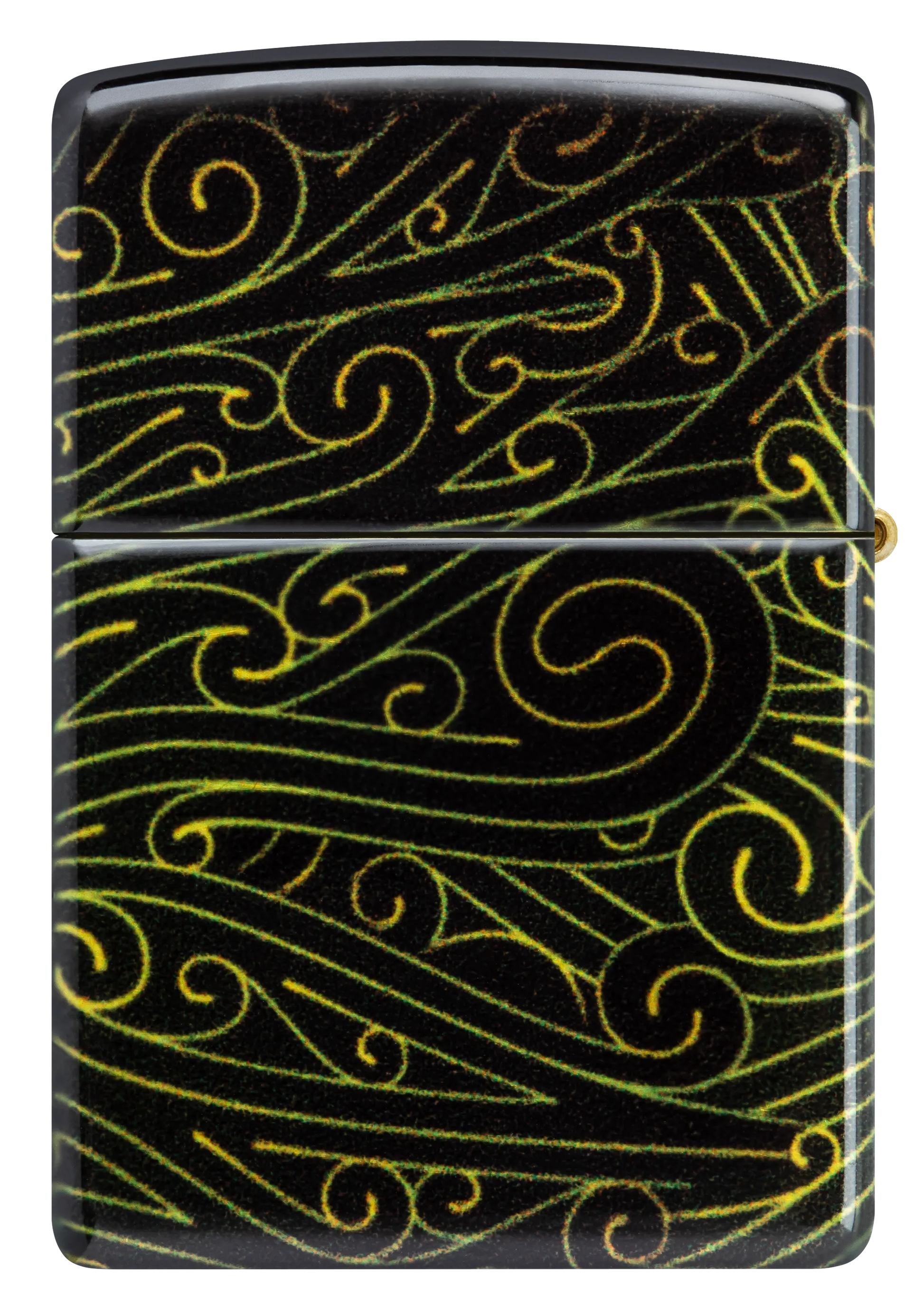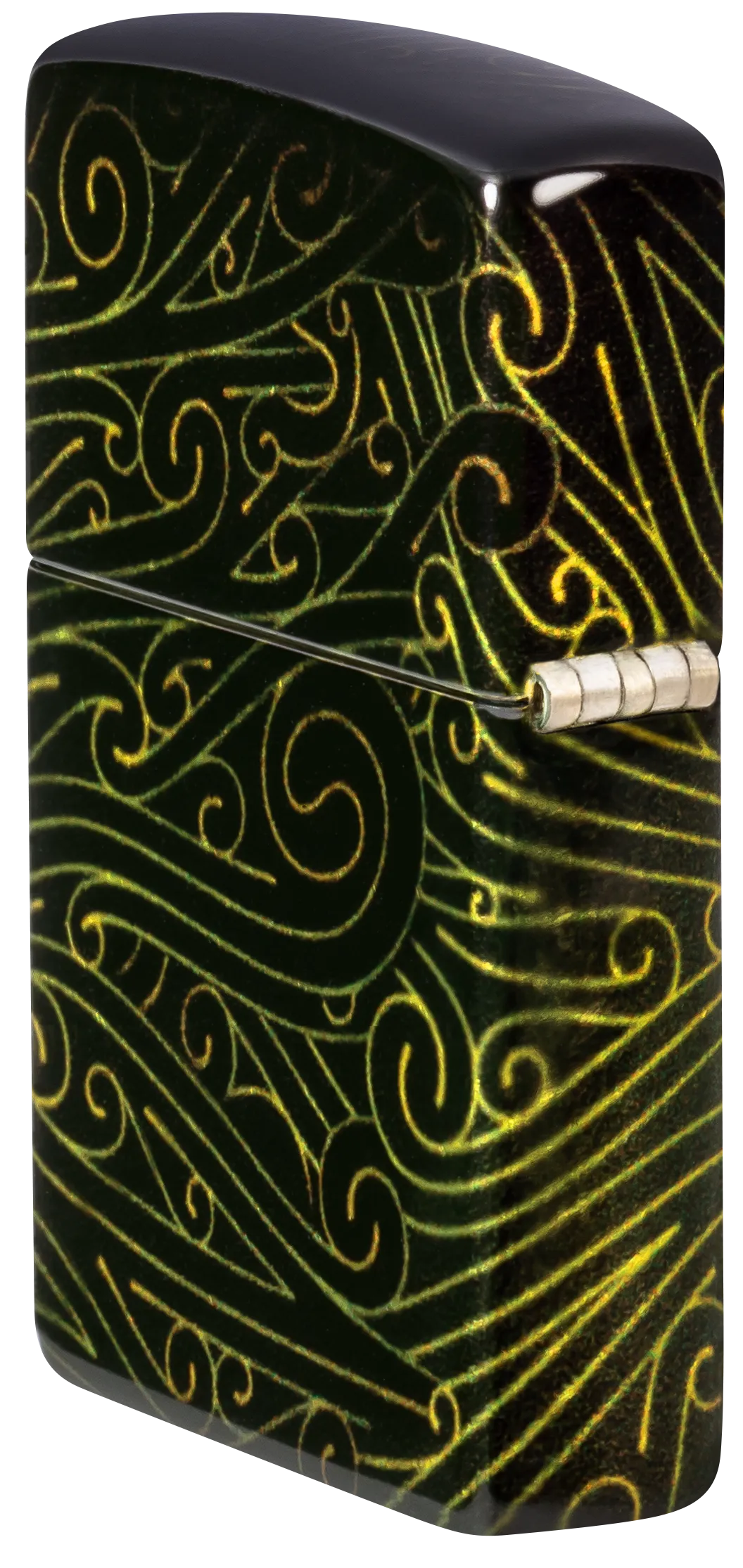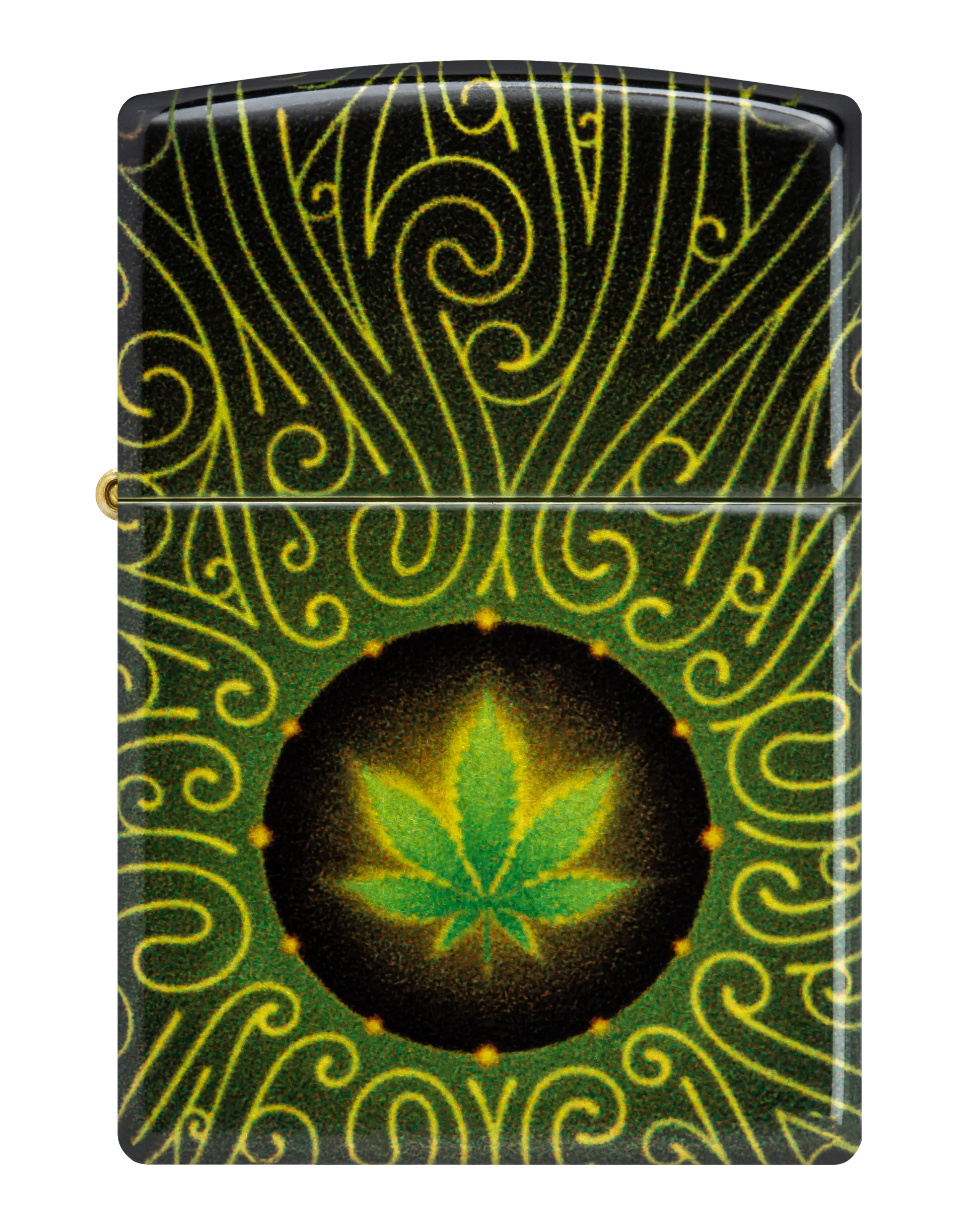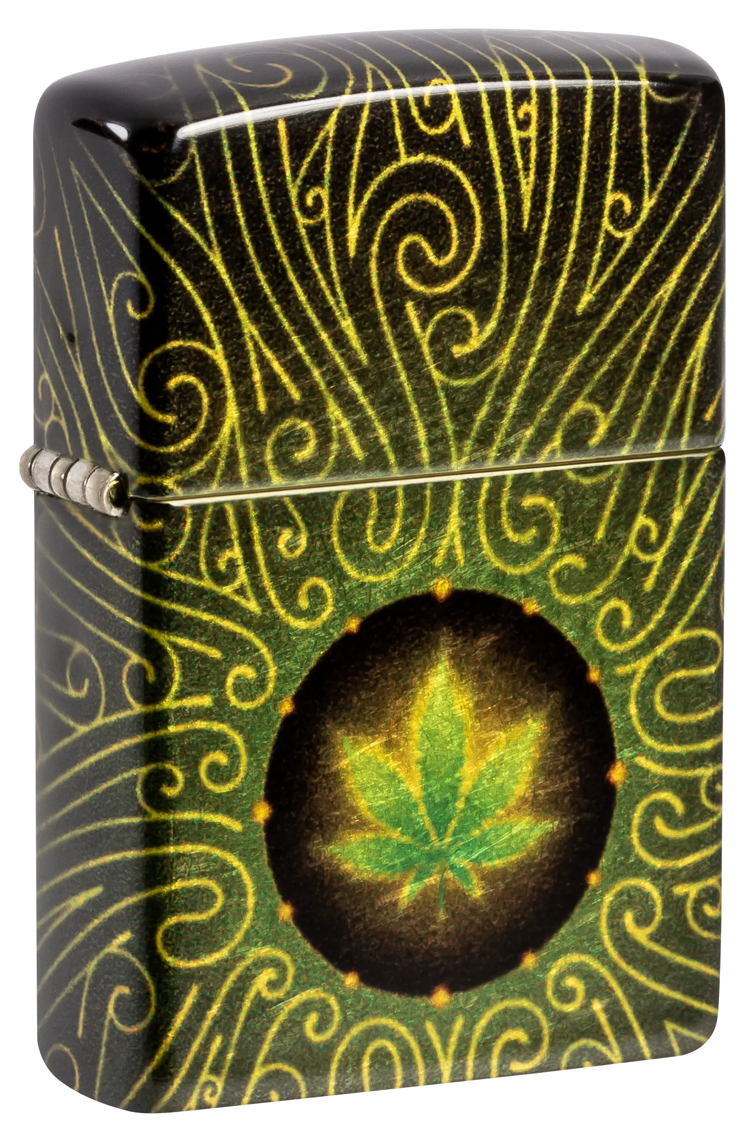 Een doolhof van kronkelende lijnen komt samen op een glanzend wietblad op deze klassieke Tumbled Brass aansteker. Het 540 Fusion design omringt de aansteker aan alle kanten, waarachter de glanzende messingtinten van de aanstekerhouder subtiel glanzen.