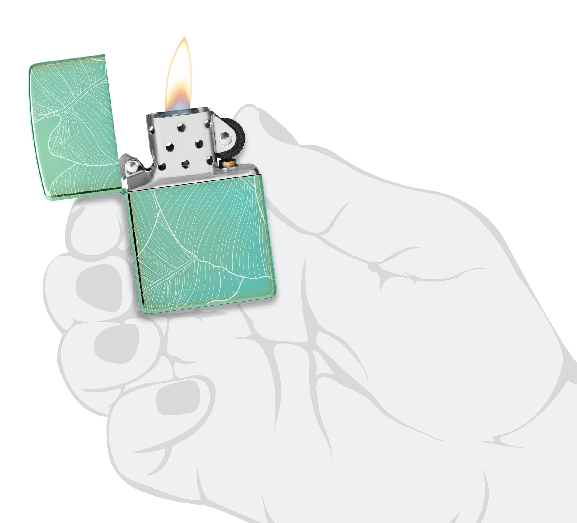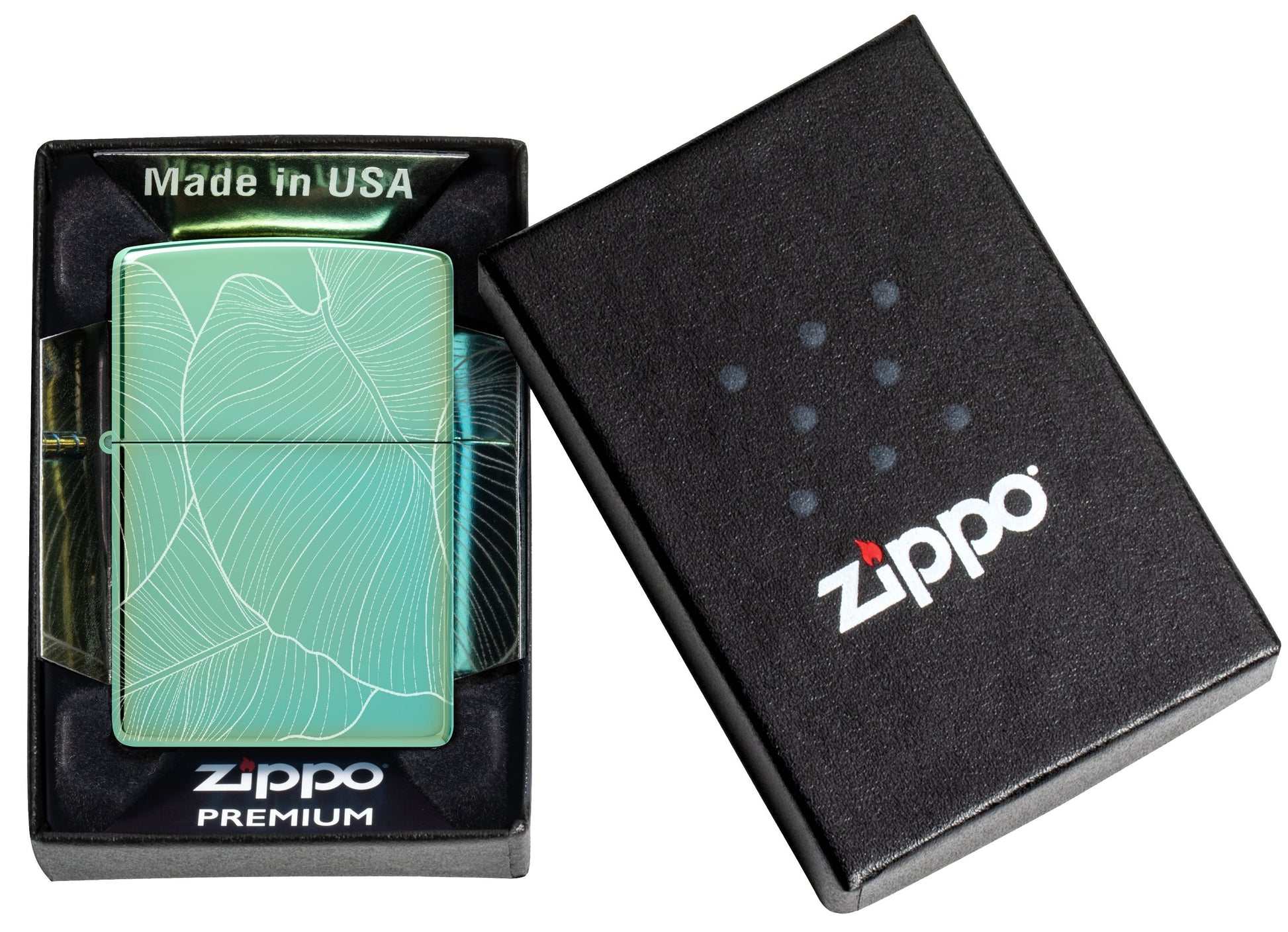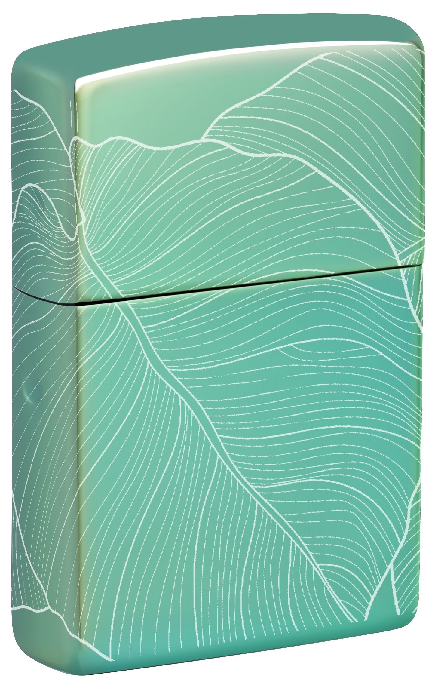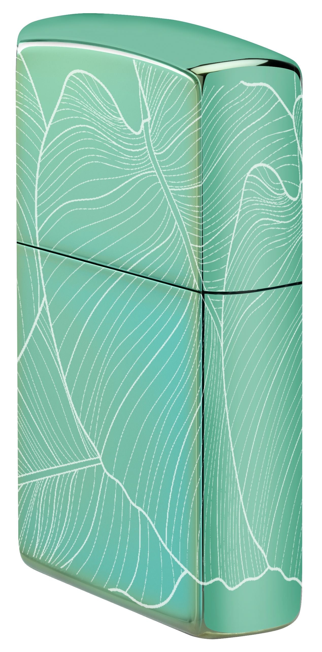 Deze prachtige High Polish Green aansteker is naadloos omgeven door delicate, verfijnde bladeren in een elegant Photo Image 360°-ontwerp.