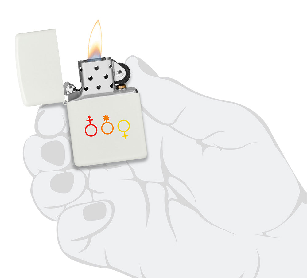 Laat zien hoe trots je bent met deze klassieke White Matte aansteker. Het fraaie Color Image ontwerp staat op beide kanten en geeft diverse vormen van expressie weer.