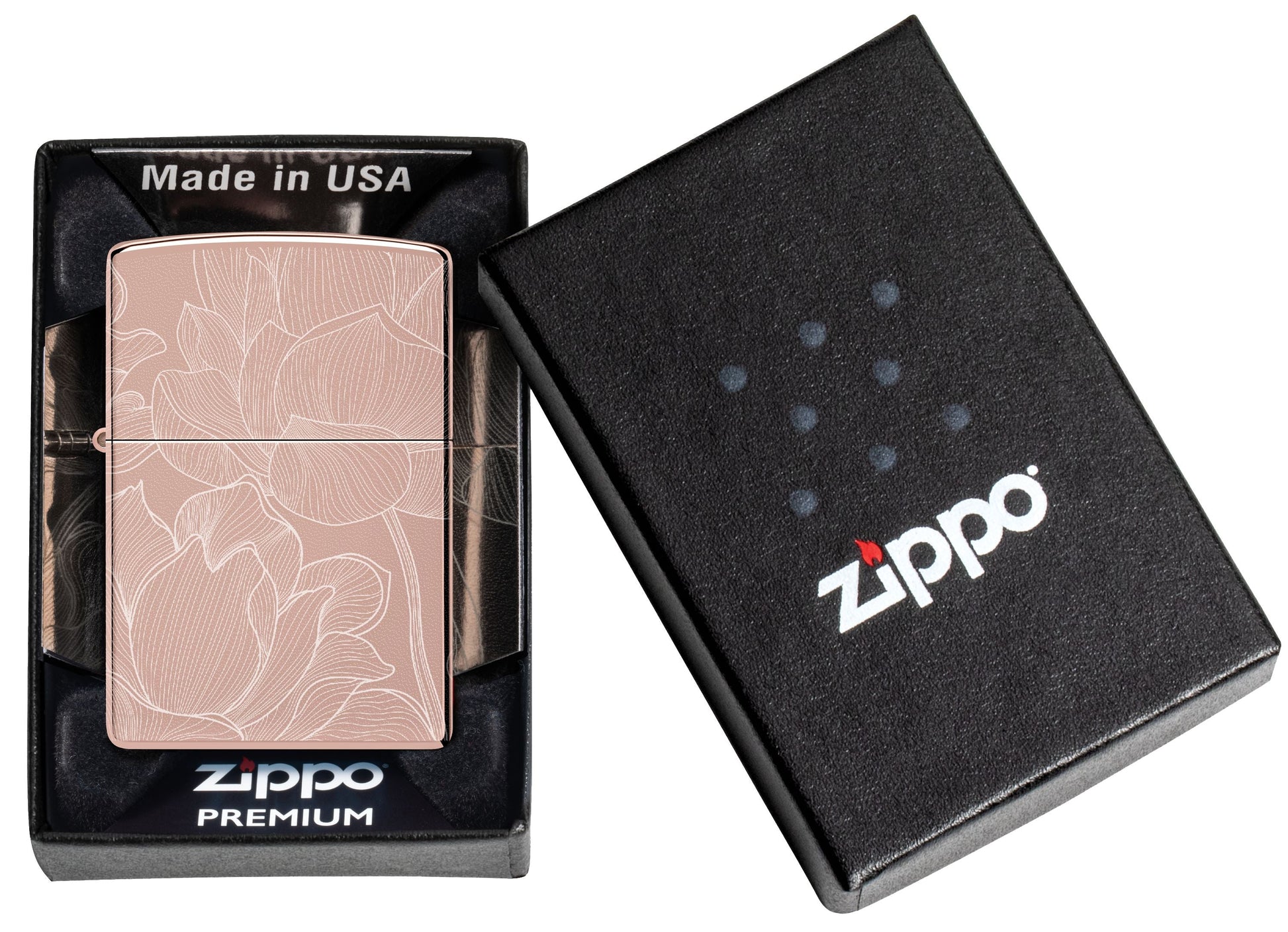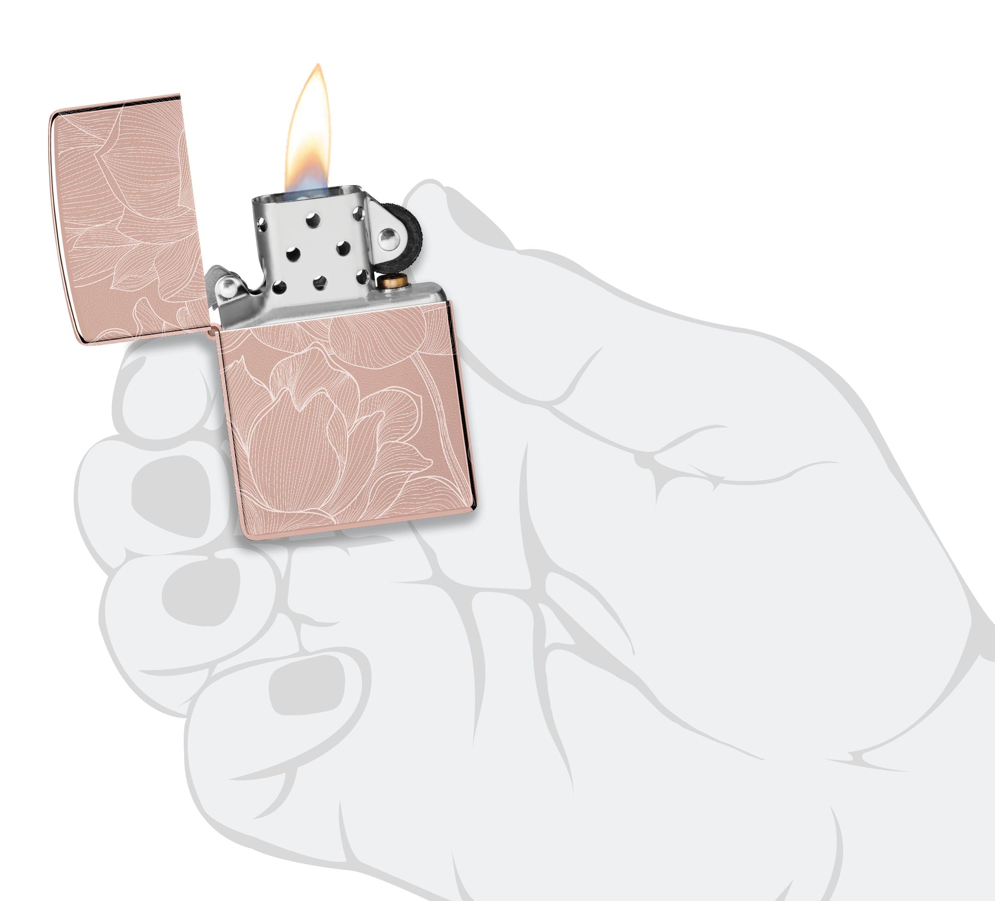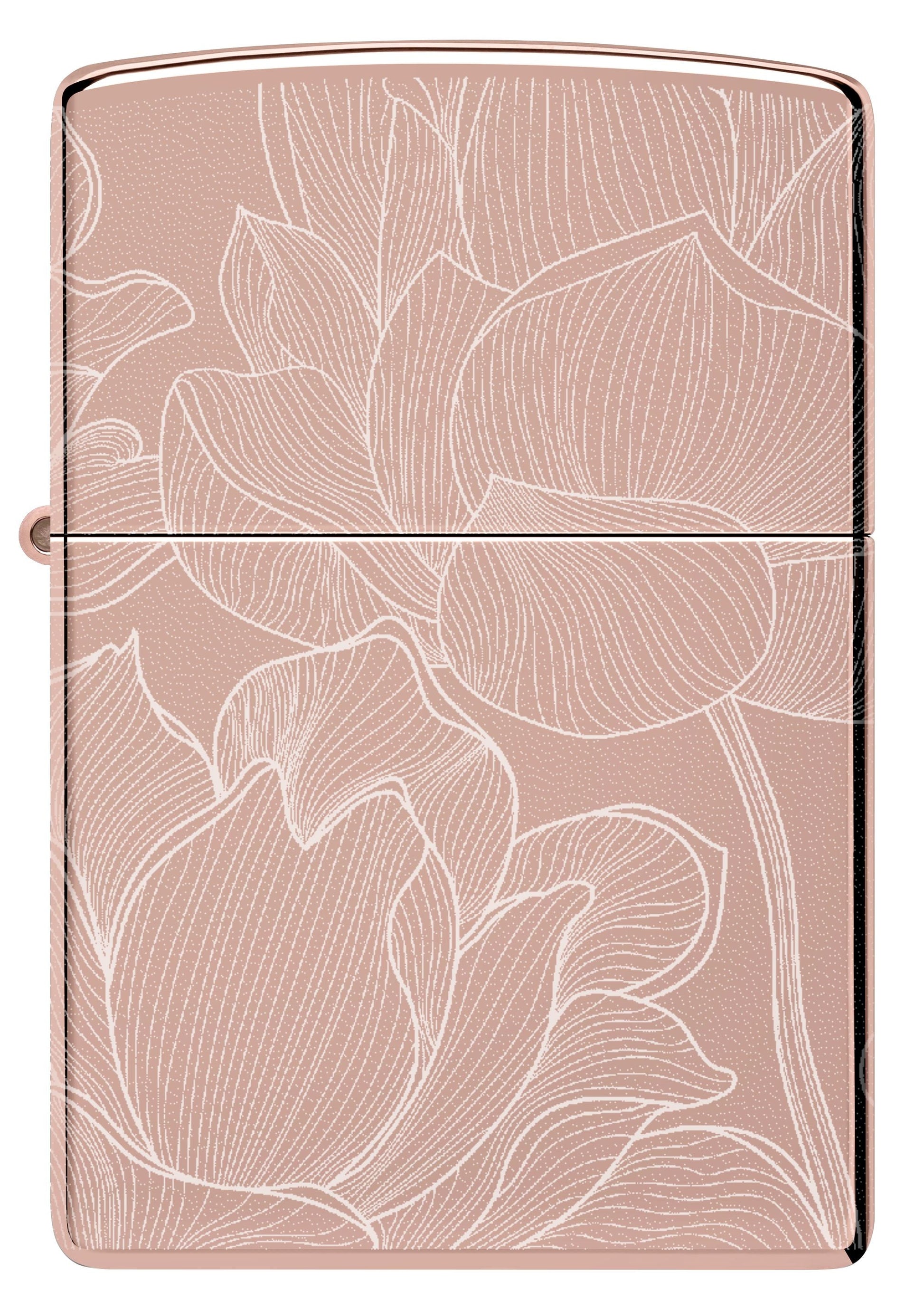 Deze luxueuze High Polish Rose Gold aansteker wordt naadloos omgeven door delicate, verfijnde bloemen in een elegant Photo Image 360°-ontwerp.