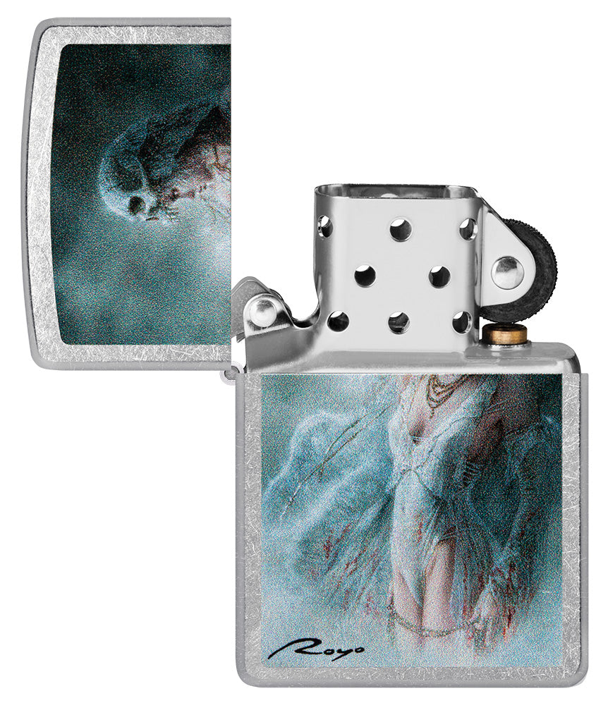 Wereldwijd staat hij bekend om zijn mystieke, dromerige illustraties. Luis Royo brengt zijn iconische stijl over naar deze klassieke Street Chrome aansteker. Dit Color Image-design verbeeldt zijn iconische The Counter of Time stuk in verbluffende kleuren en details.