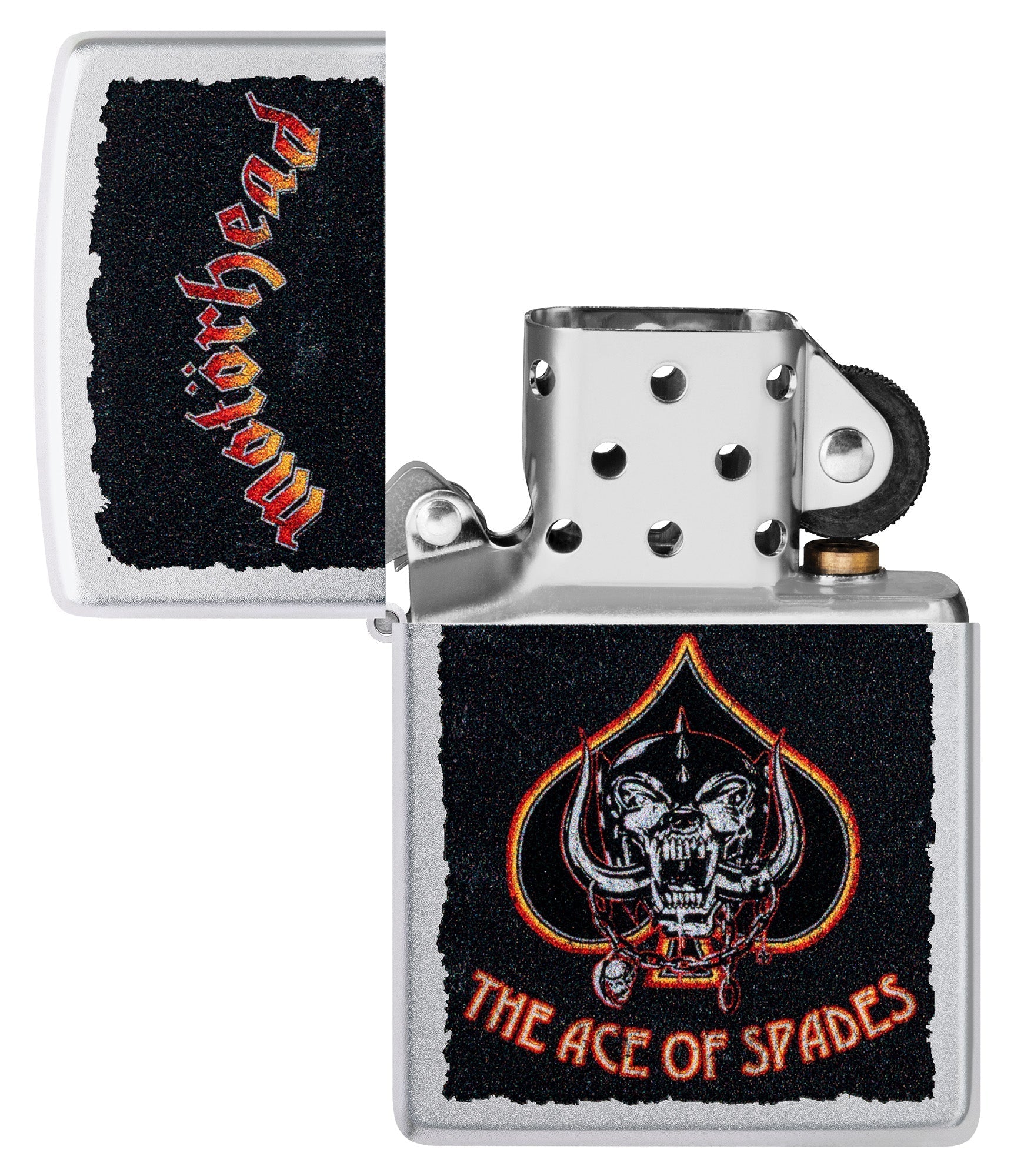 Herbeleef de muziek van Motörhead met deze klassieke Satin Chrome-aansteker. Het logo van de band en de iconische mascotte, Warpig, zijn afgebeeld met het opschrift ‘The Ace of Spades’ in het spannende Color Image-ontwerp.