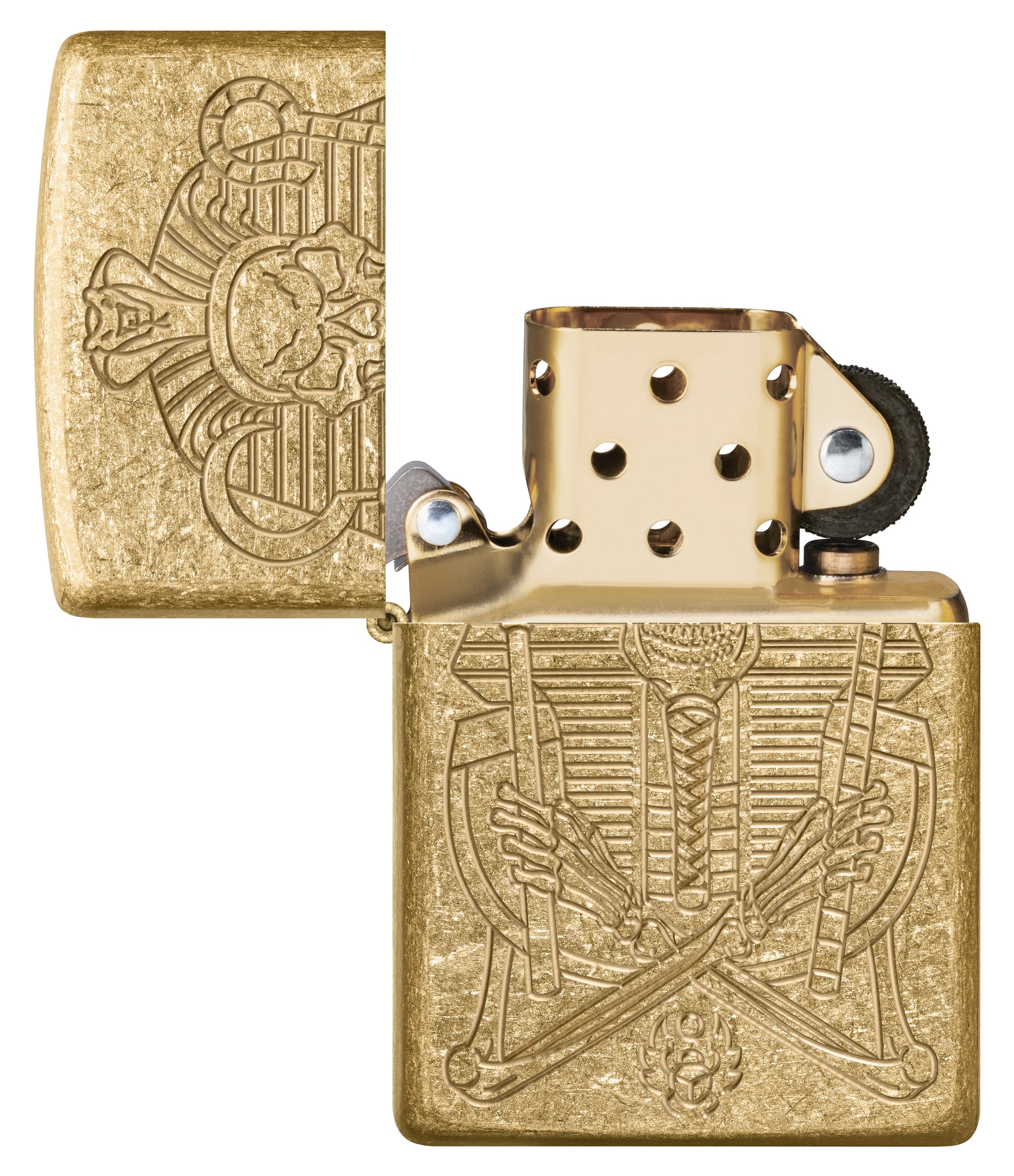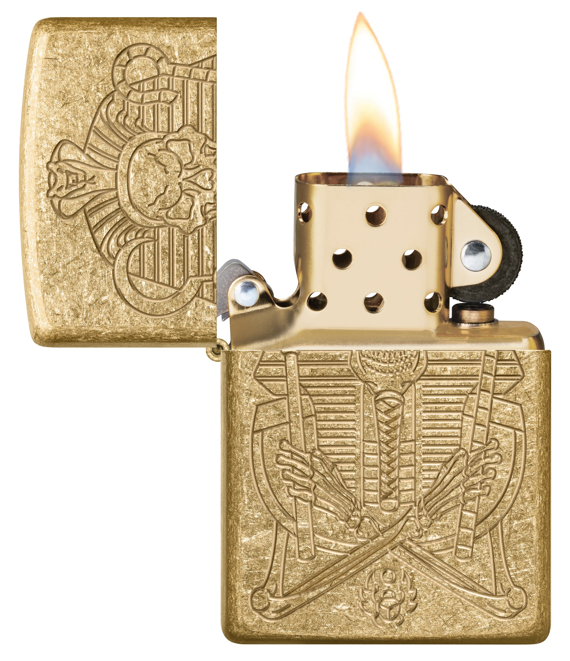 Claim een stukje van de schat van de farao zonder een oude tombe te plunderen met deze Armor® Tumbled Brass aansteker. Het ingewikkelde ontwerp is in luxe details geëtst met ons Deep Carve-proces.