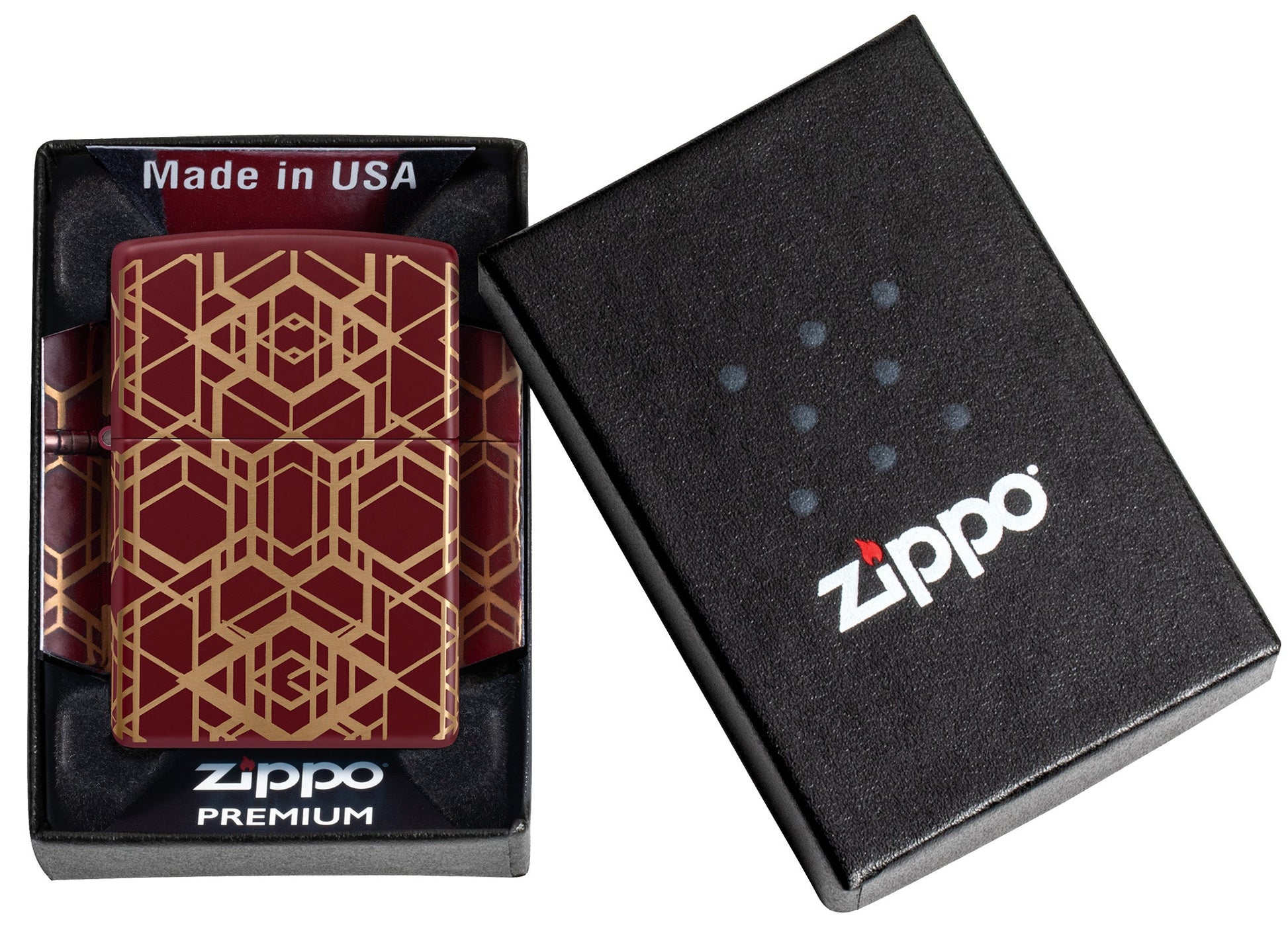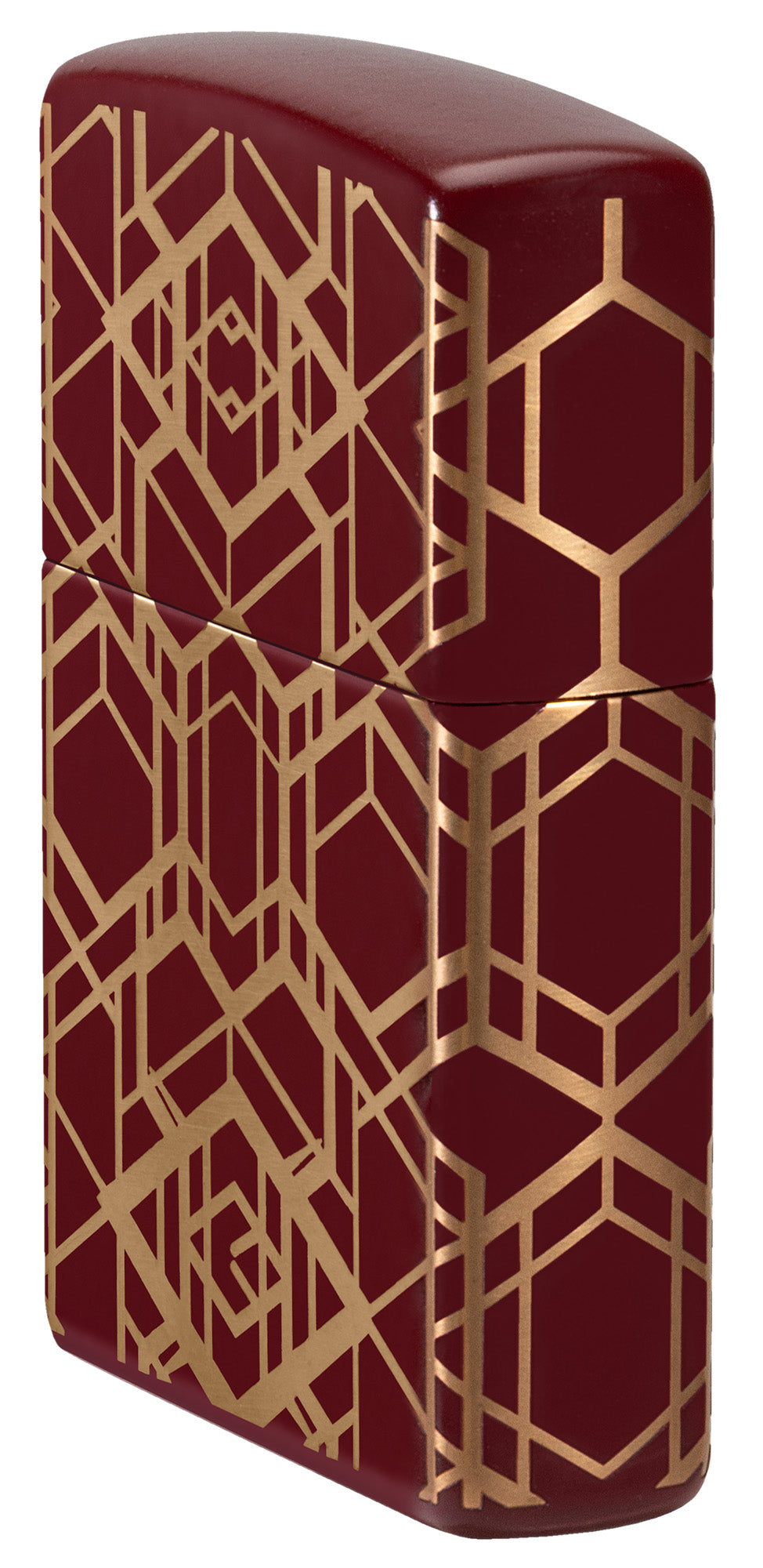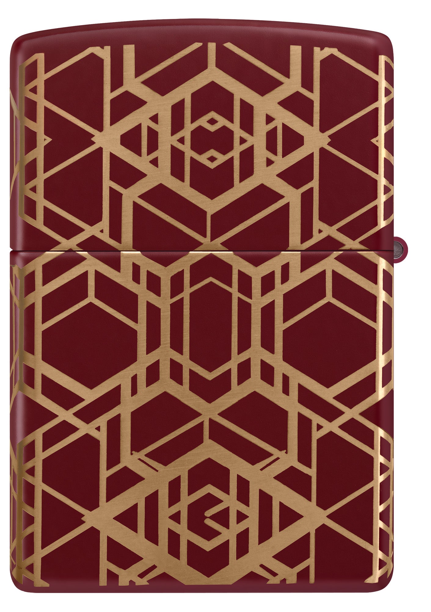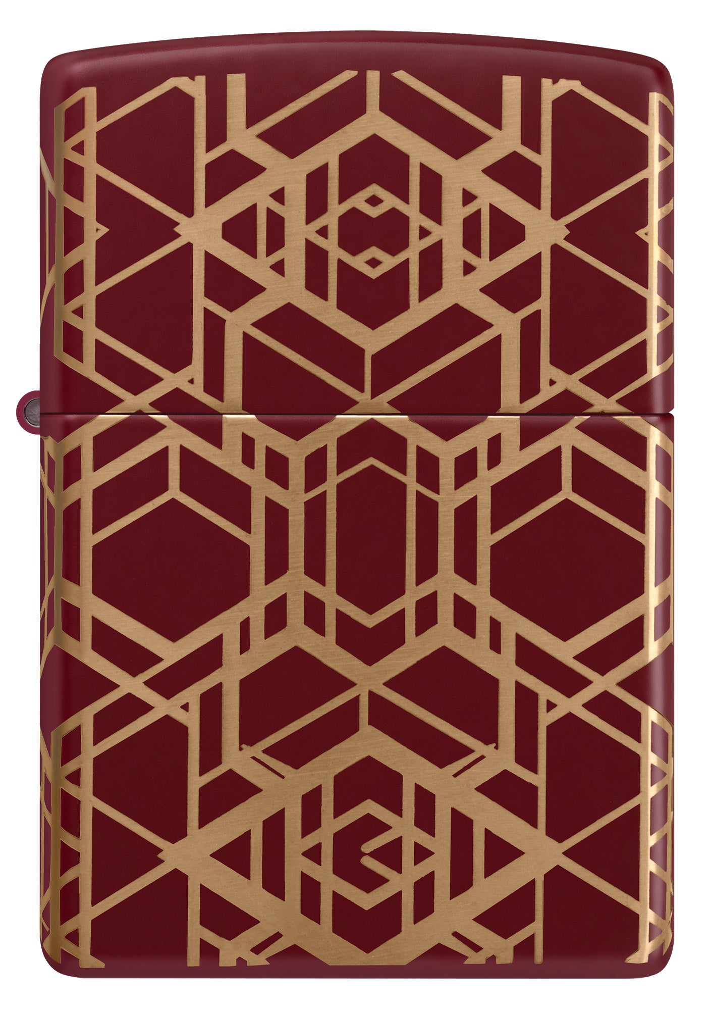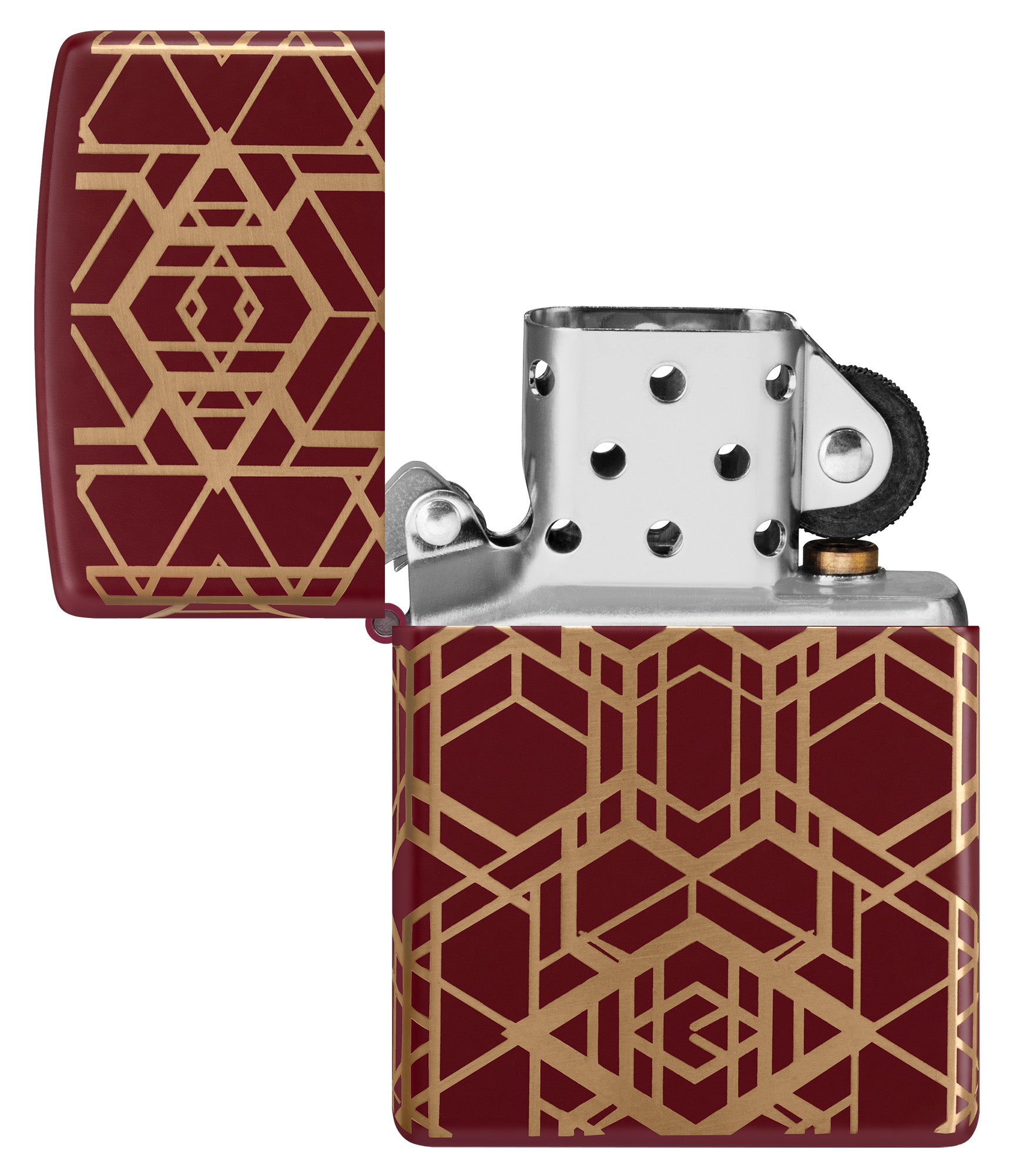 Betoverende lijnen lopen rondom alle zijden van deze klassieke Merlot-aansteker in een strak en naadloos Laser 360°-ontwerp, waardoor het glanzende messing onder de matte afwerking van de aansteker zichtbaar wordt.