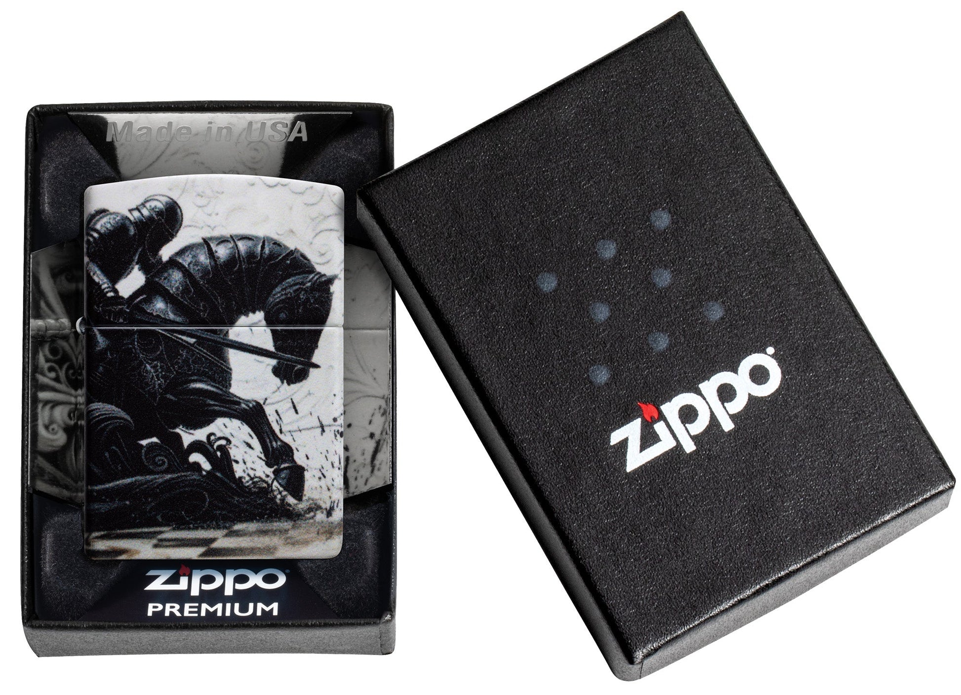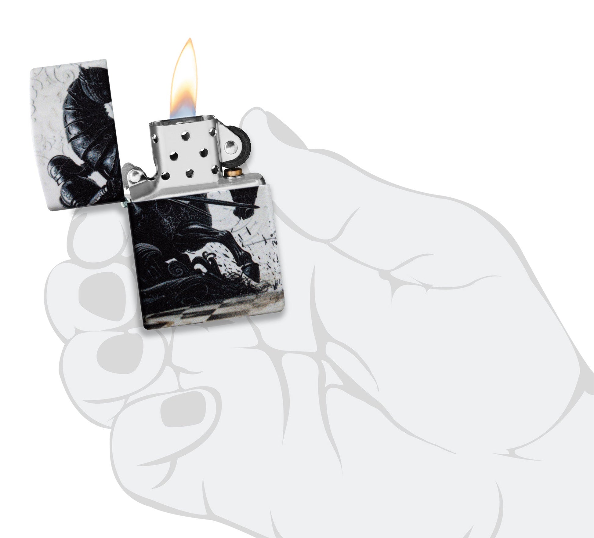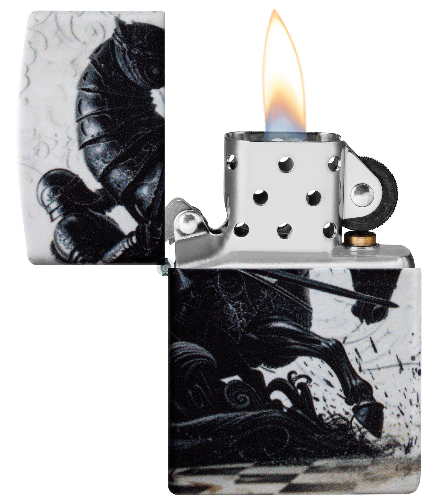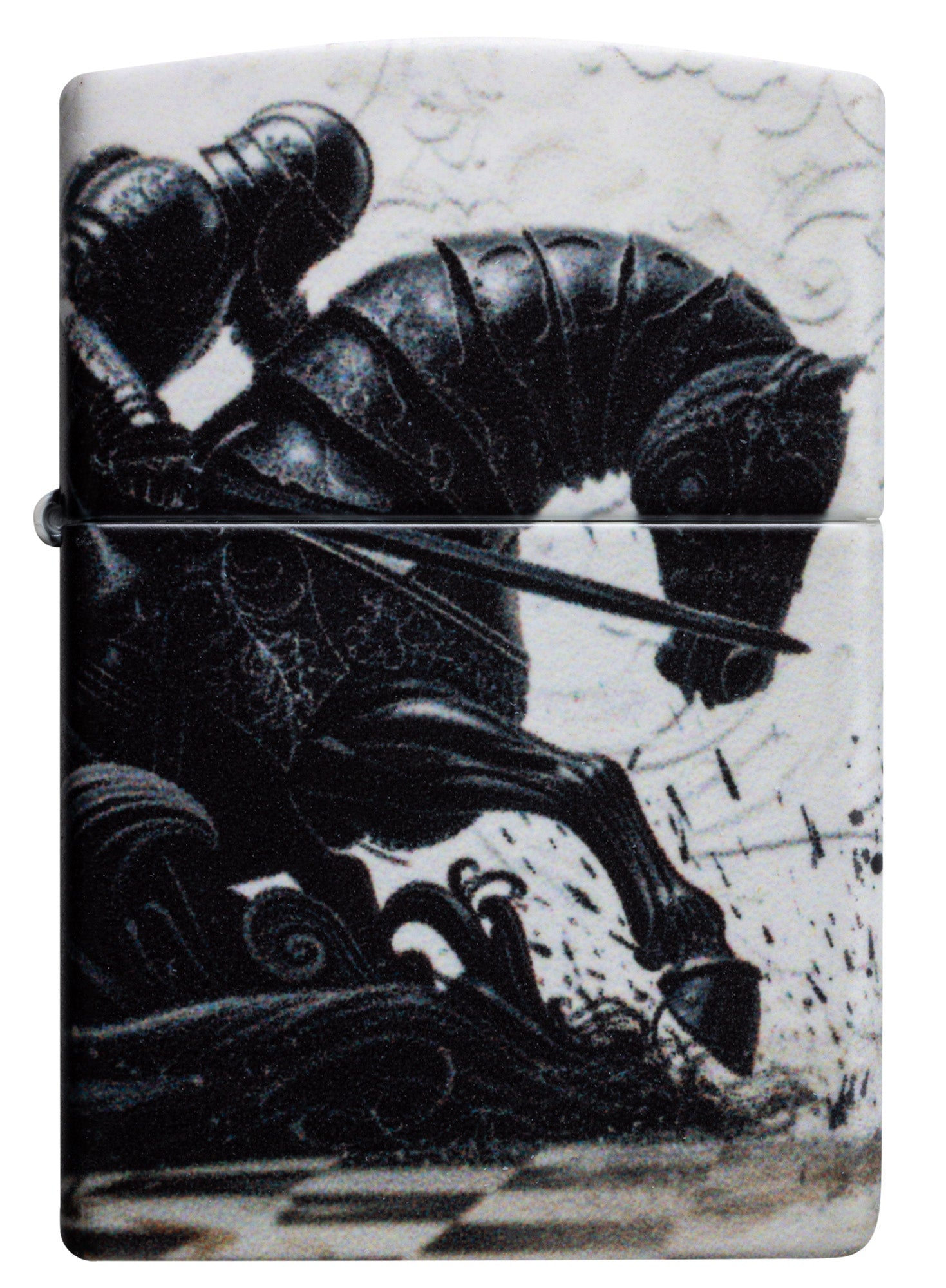Je favoriete schaakspel komt tot leven op deze klassieke 540° Color-aansteker. Het naadloze ontwerp toont levensechte ridders in een zinderend gevecht en loopt door tot alle kanten van de aansteker.