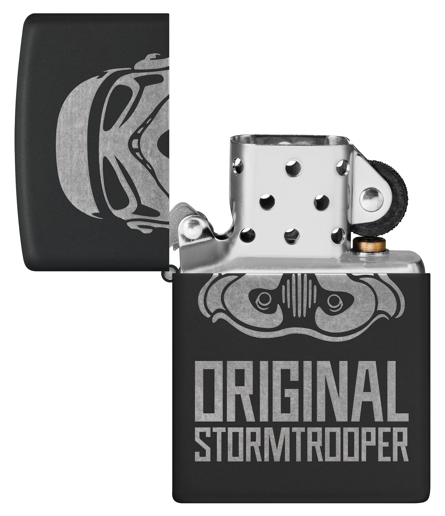 Dit ontwerp van Original Stormtrooper, misschien wel de meest herkenbare strijdmacht in het heelal, komt perfect tot zijn recht op deze klassieke Black Matte-aansteker. De iconische helm en het Original Stormtrooper-logo zijn uitgevoerd in koele chroomtinten in een lasergegraveerd ontwerp.