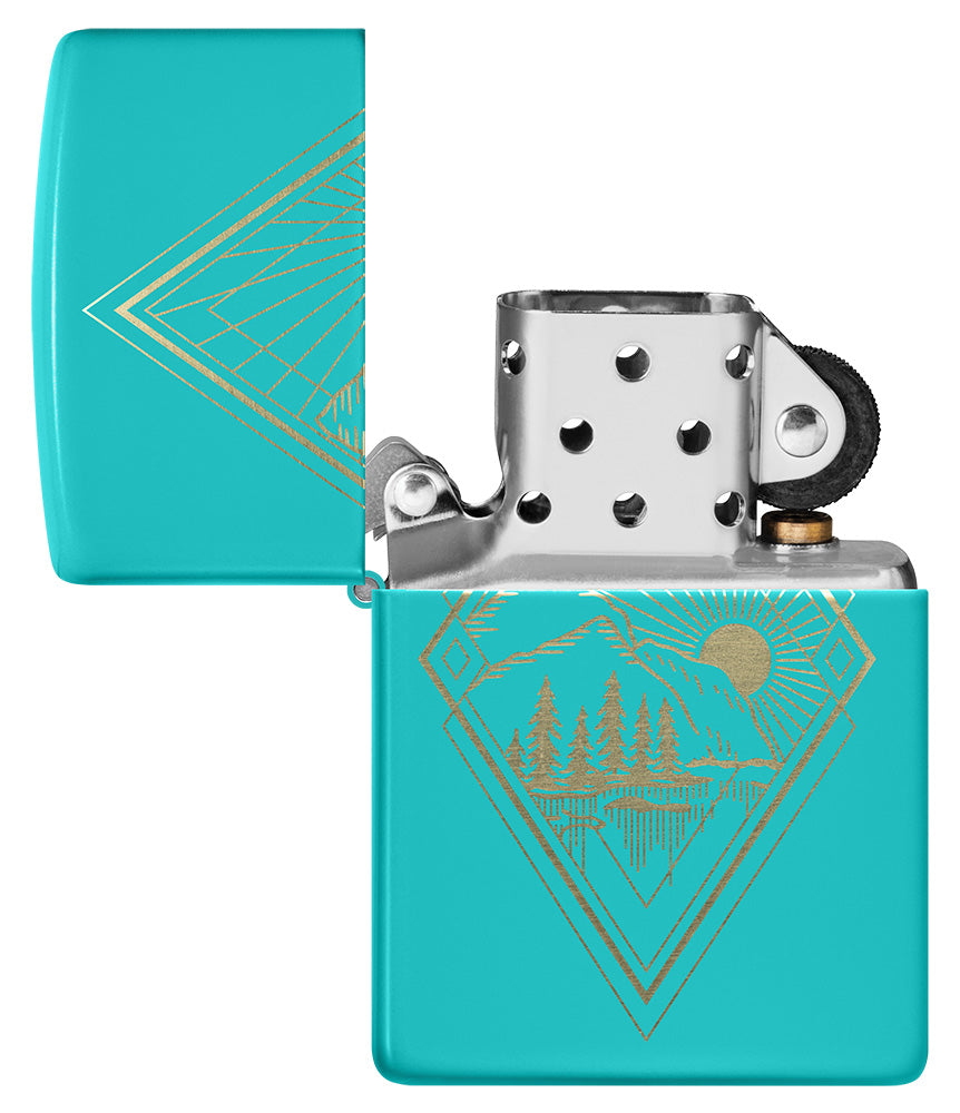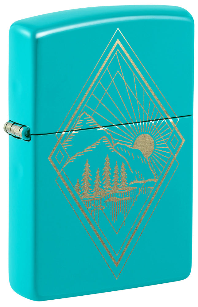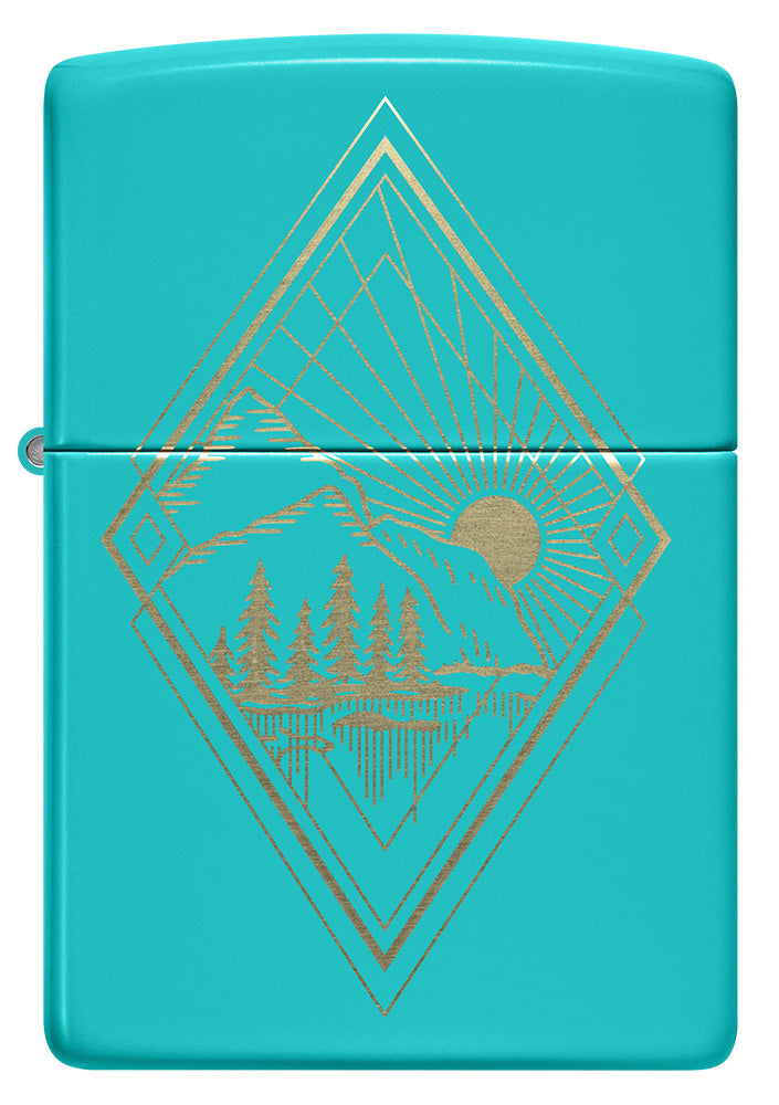 Beantwoord de roep van de natuur met deze Flat Turquoise aansteker met een buitenmotief dat met een laser is gegraveerd.