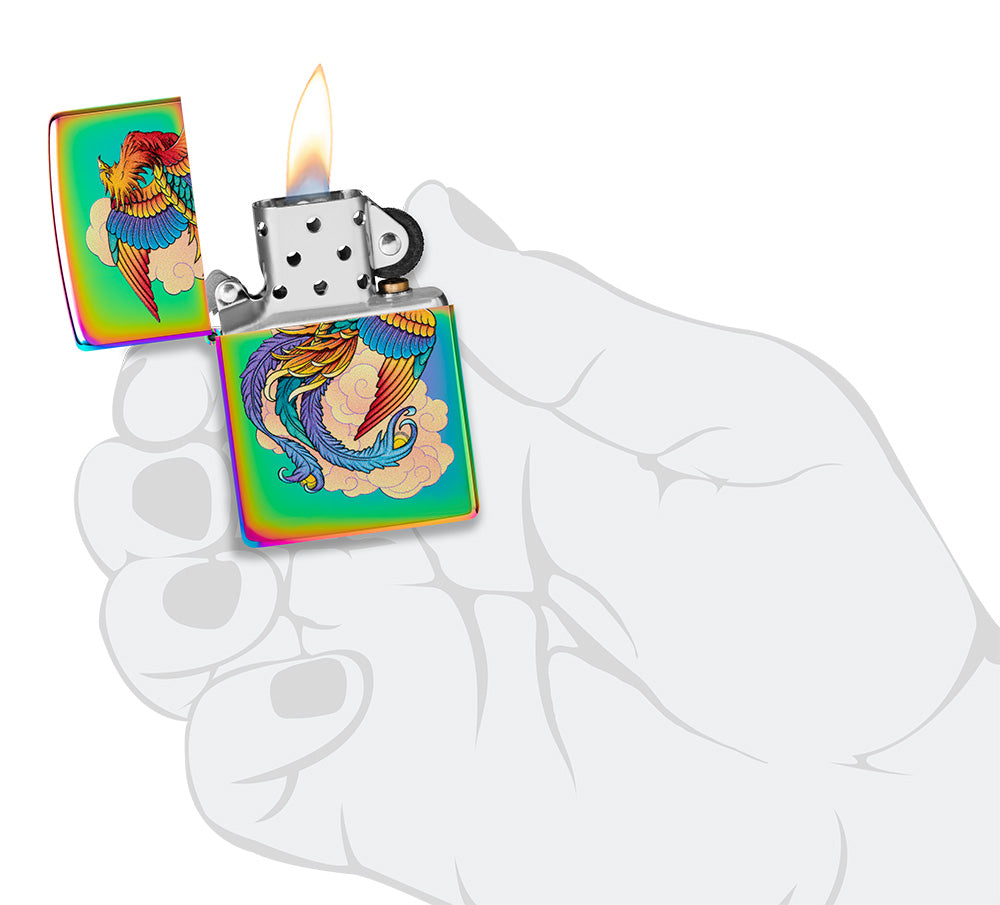 Een levendige en majestueuze feniks zweeft over het oppervlak van deze schitterende Multi Color aansteker: een sierlijke combinatie met het betoverende Color Image-design.
