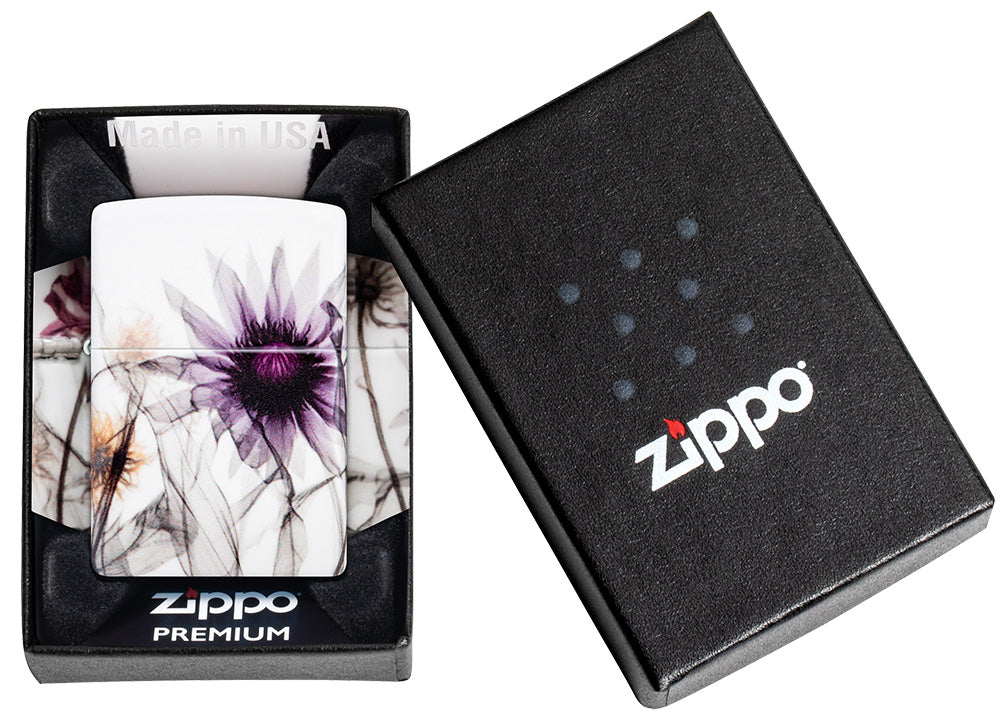 Prachtige botanische planten worden vanuit een nieuw perspectief bekeken op deze prachtige 540 Color aansteker. Delicate bloemen verschijnen op elk oppervlak van de aansteker alsof je ze door een röntgenapparaat bekijkt.