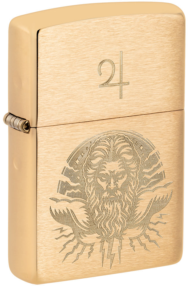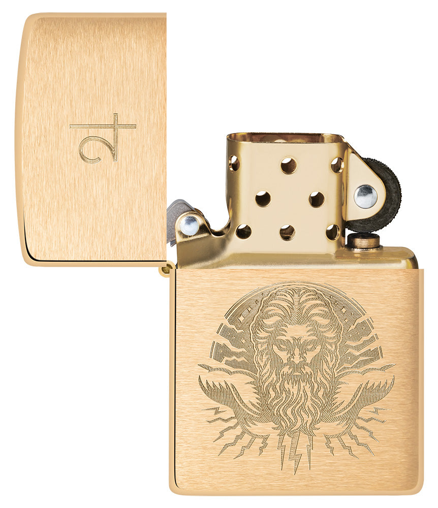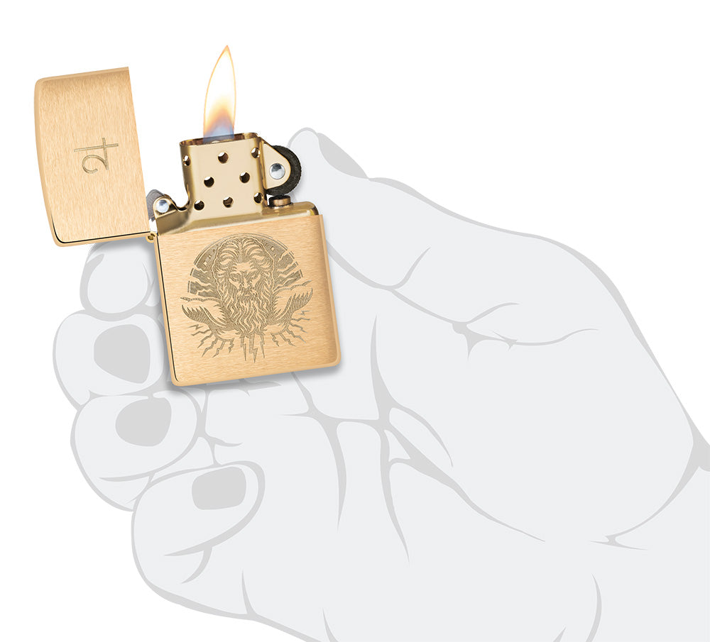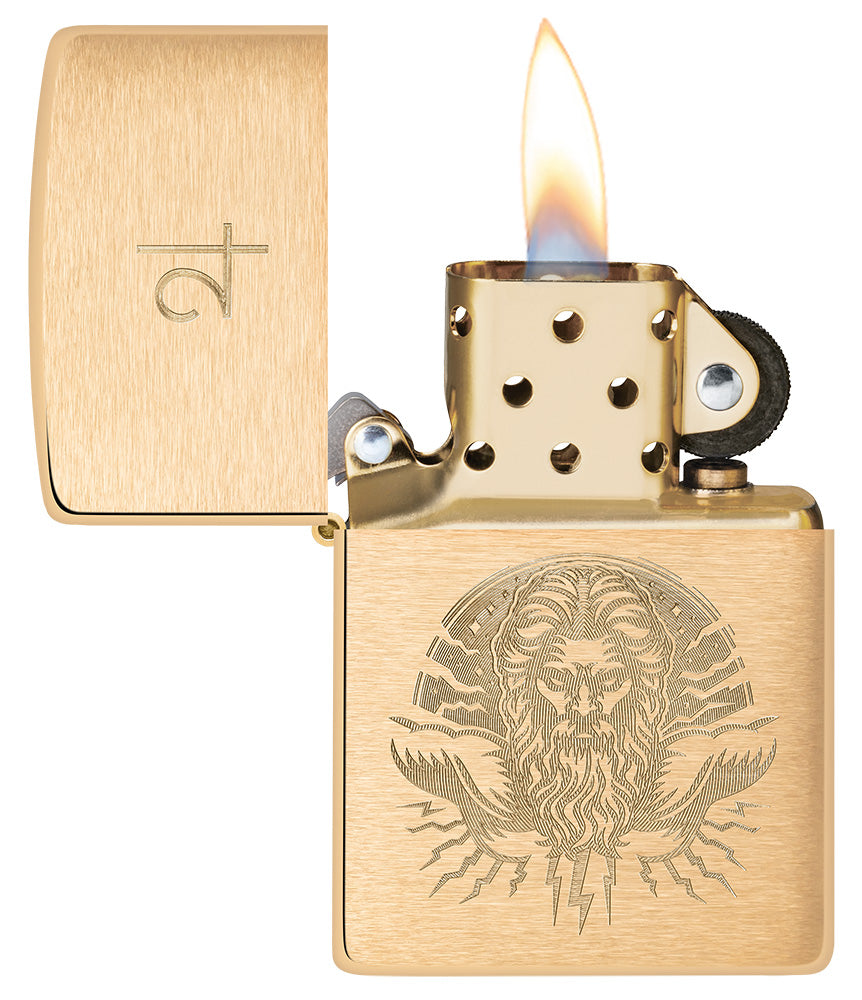 Oppergod Jupiter, de grootste in het pantheon, heerst over de hemel en het onweer op deze klassieke Brushed Brass aansteker in een verfijnd Laser Engrave design.