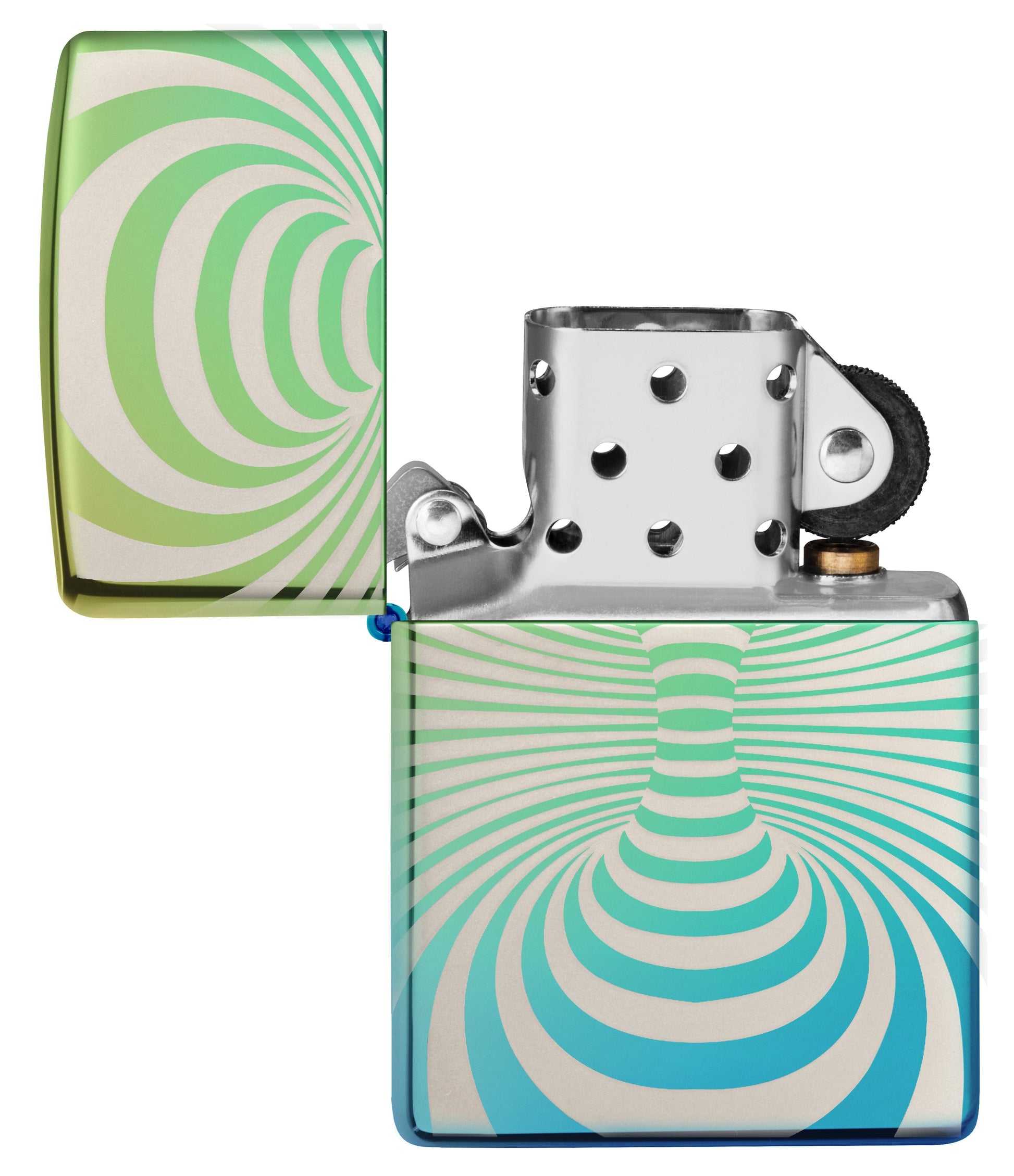 Een trechterwolk wervelt rond alle kanten van deze betoverende High Polish Teal aansteker in een Laser 360° ontwerp.