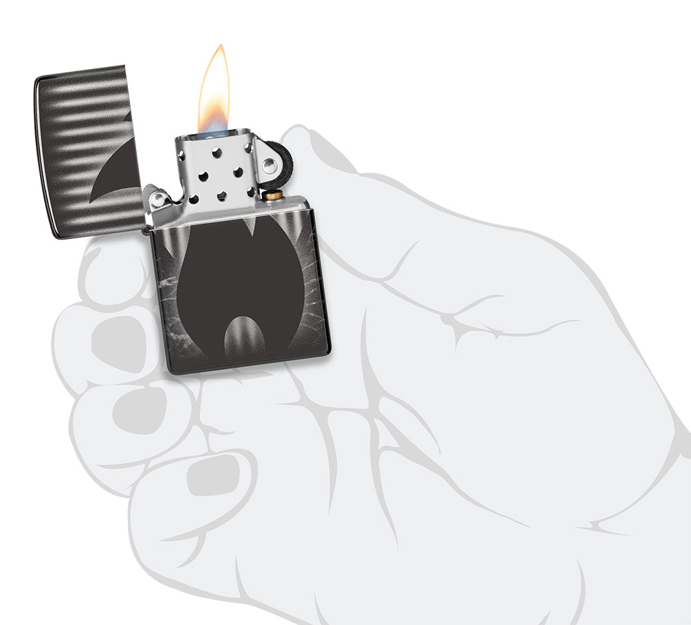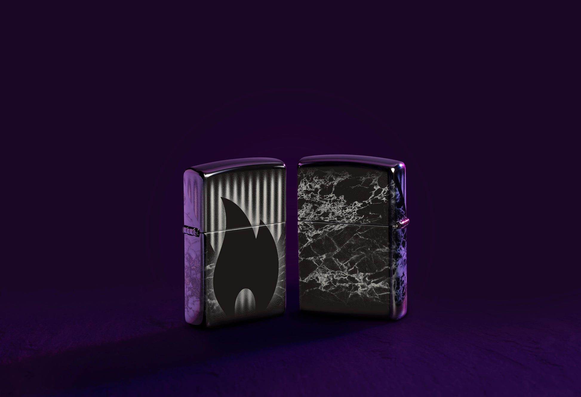 Het klassieke Zippo vlampictogram staat centraal op deze fraaie High Polish Black aansteker en wordt omringd door subtiele patronen aan alle kanten, in een naadloos Photo Image 360° ontwerp.