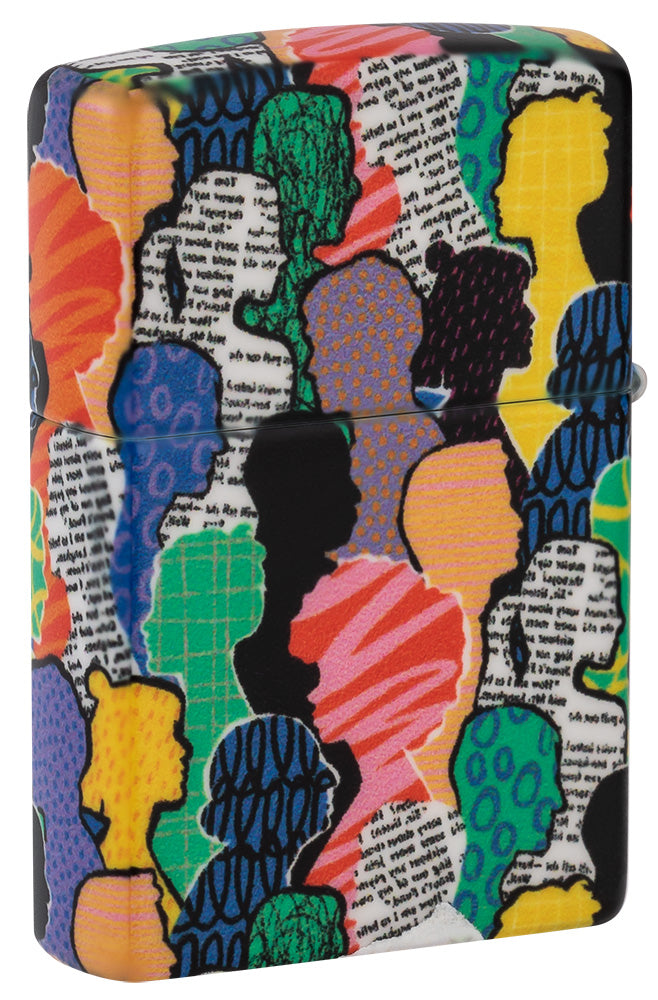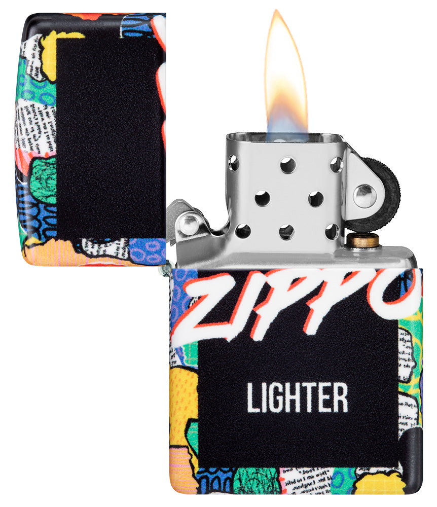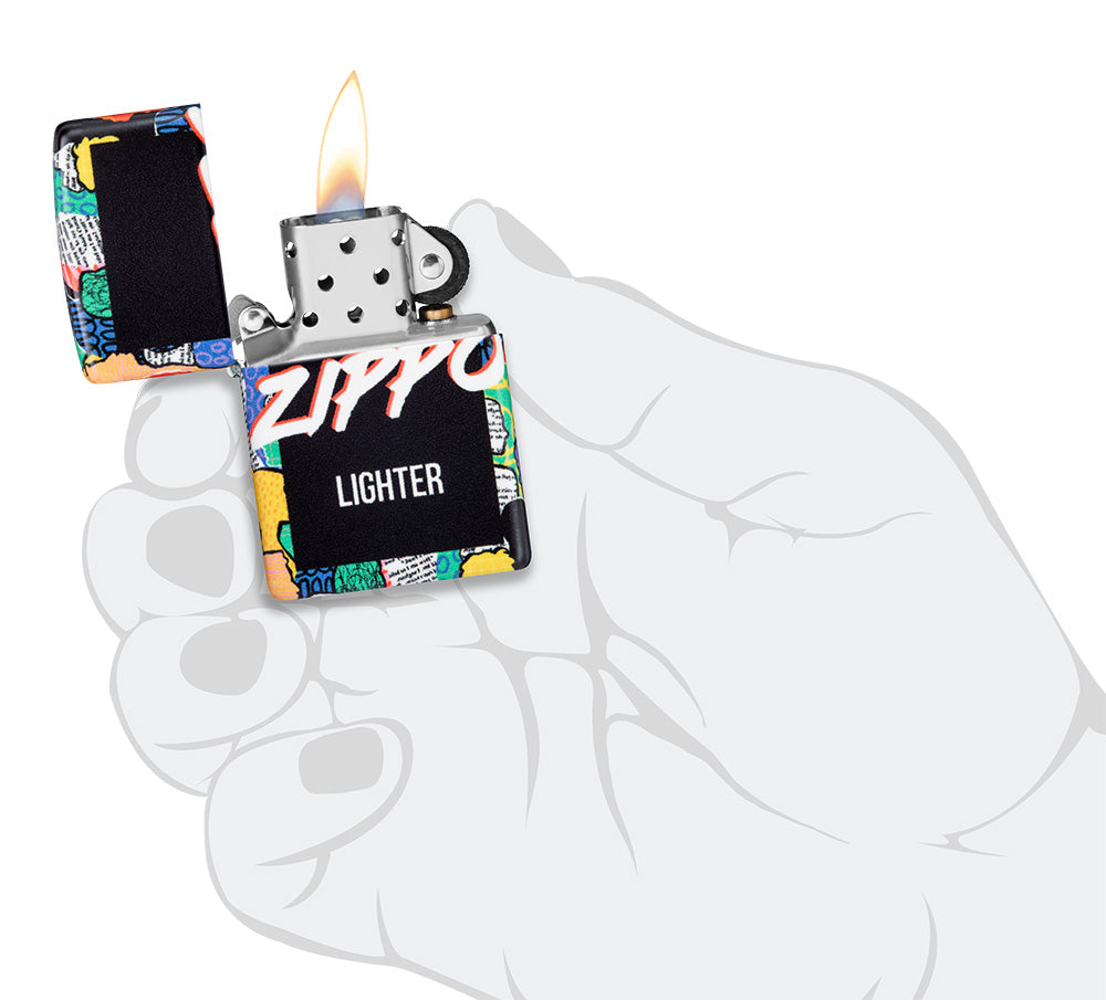 Zippo valt altijd op in een menigte. Op deze prachtige 540° Color aansteker staat Zippo boven een menigte papieren knipsels in een levendig, naadloos ontwerp op alle zijden van de behuizing. Wordt geleverd in een geschenkdoos. Voor optimale prestaties, vullen met Zippo aanstekerbrandstof.